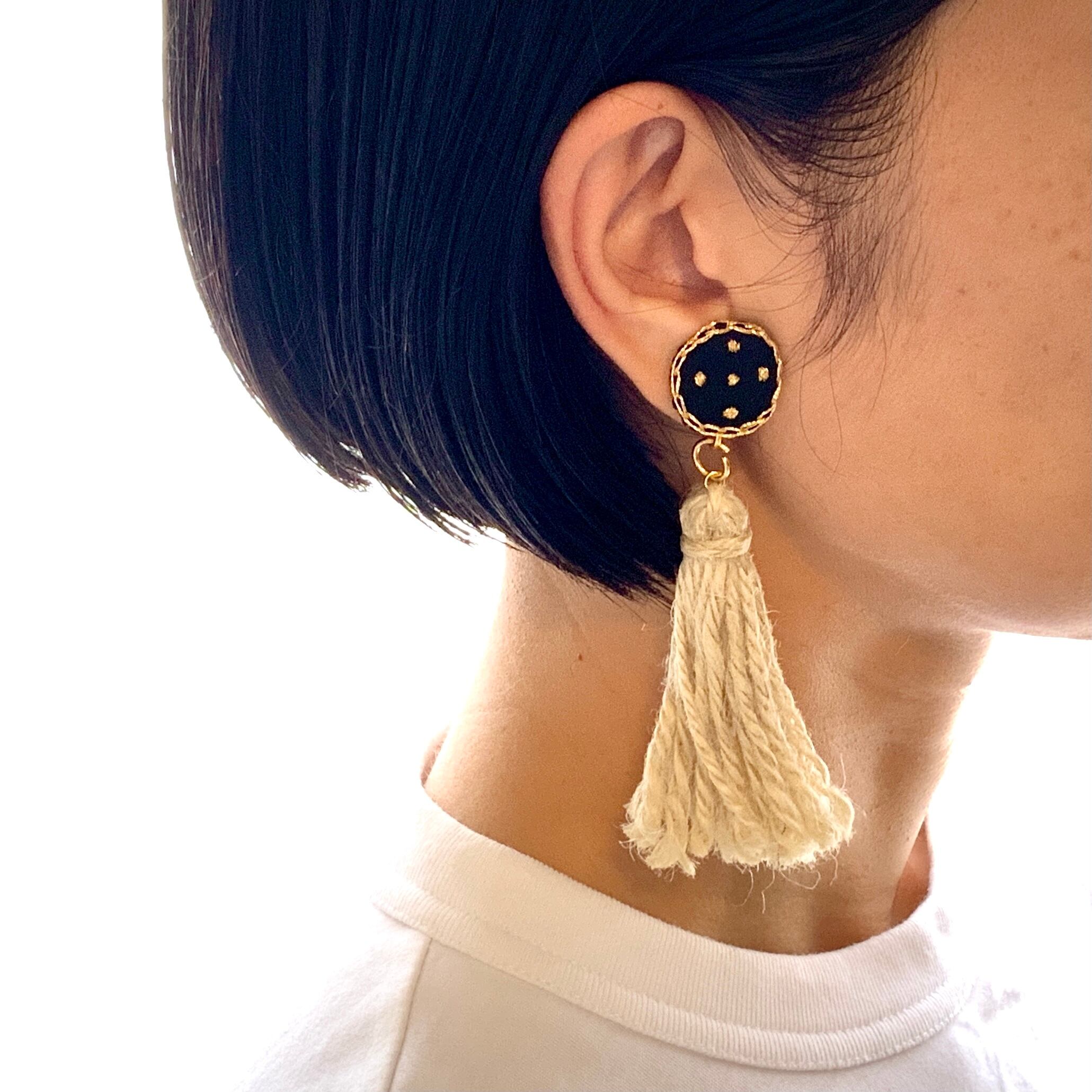 耳飾り1 片耳用 「黒まると、タッセル」ピアス・イヤリング or 小さなブローチ/s-fotsusev