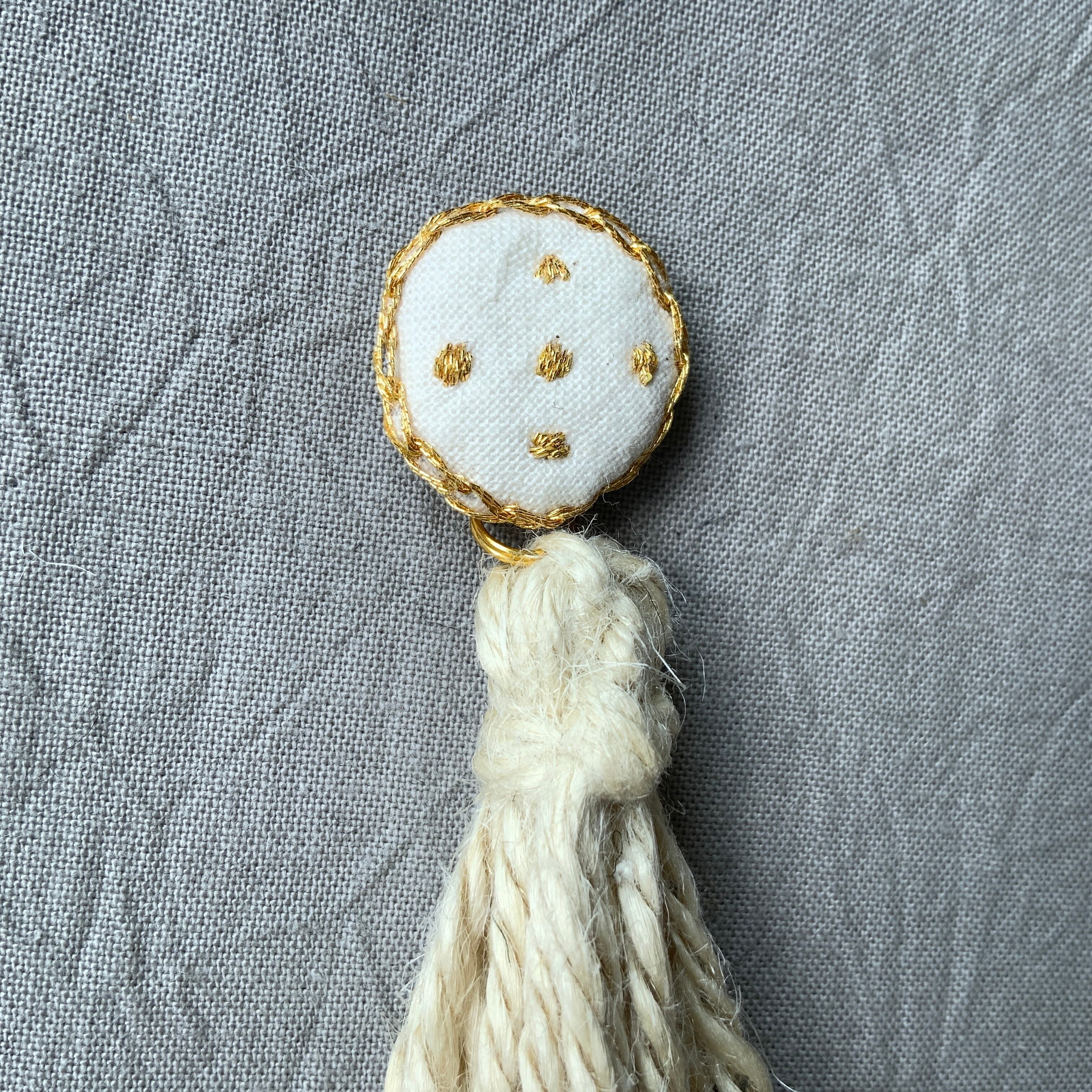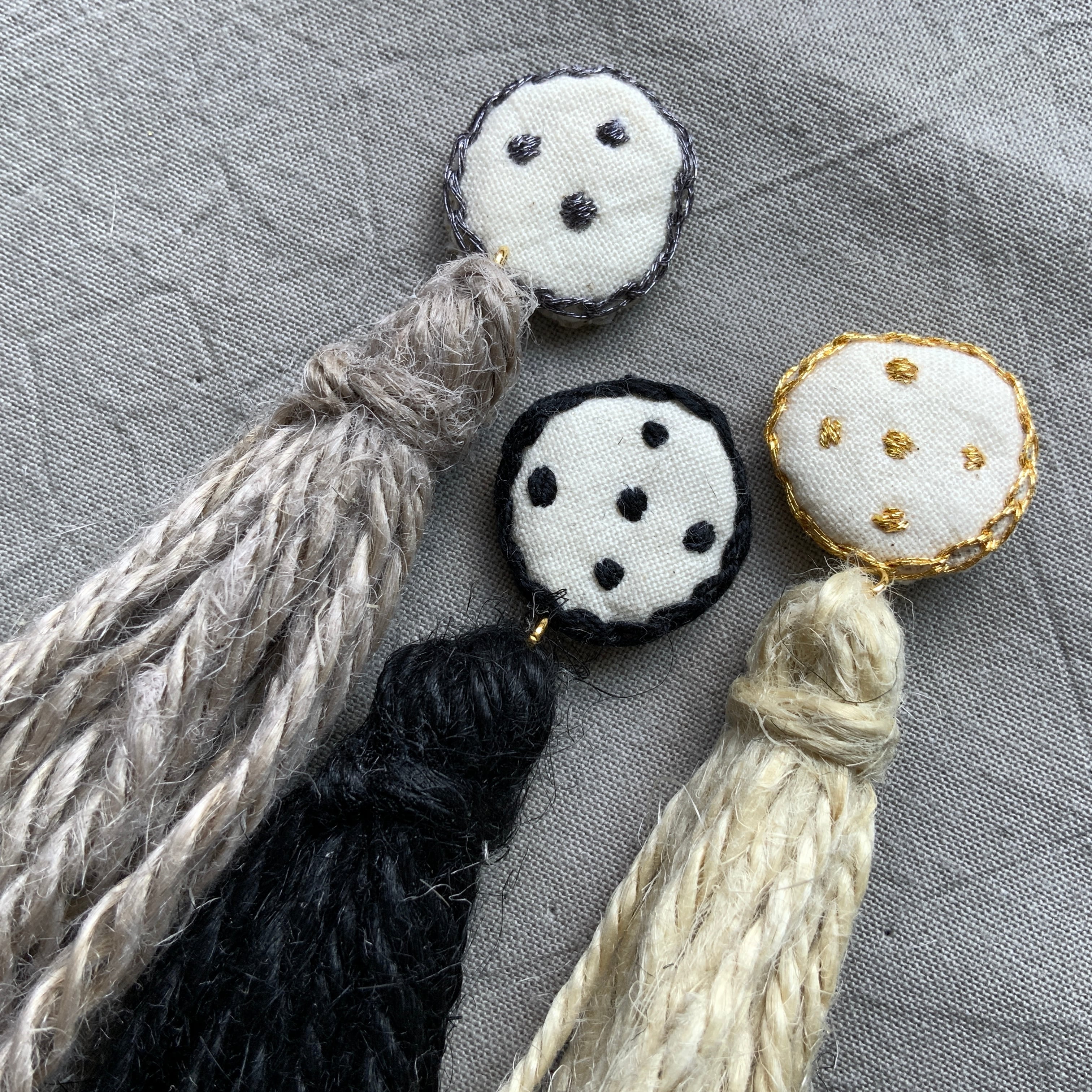 耳飾り6 片耳用 「白まると、タッセル」ピアス・イヤリング or 小さなブローチ/s-fotsusev
