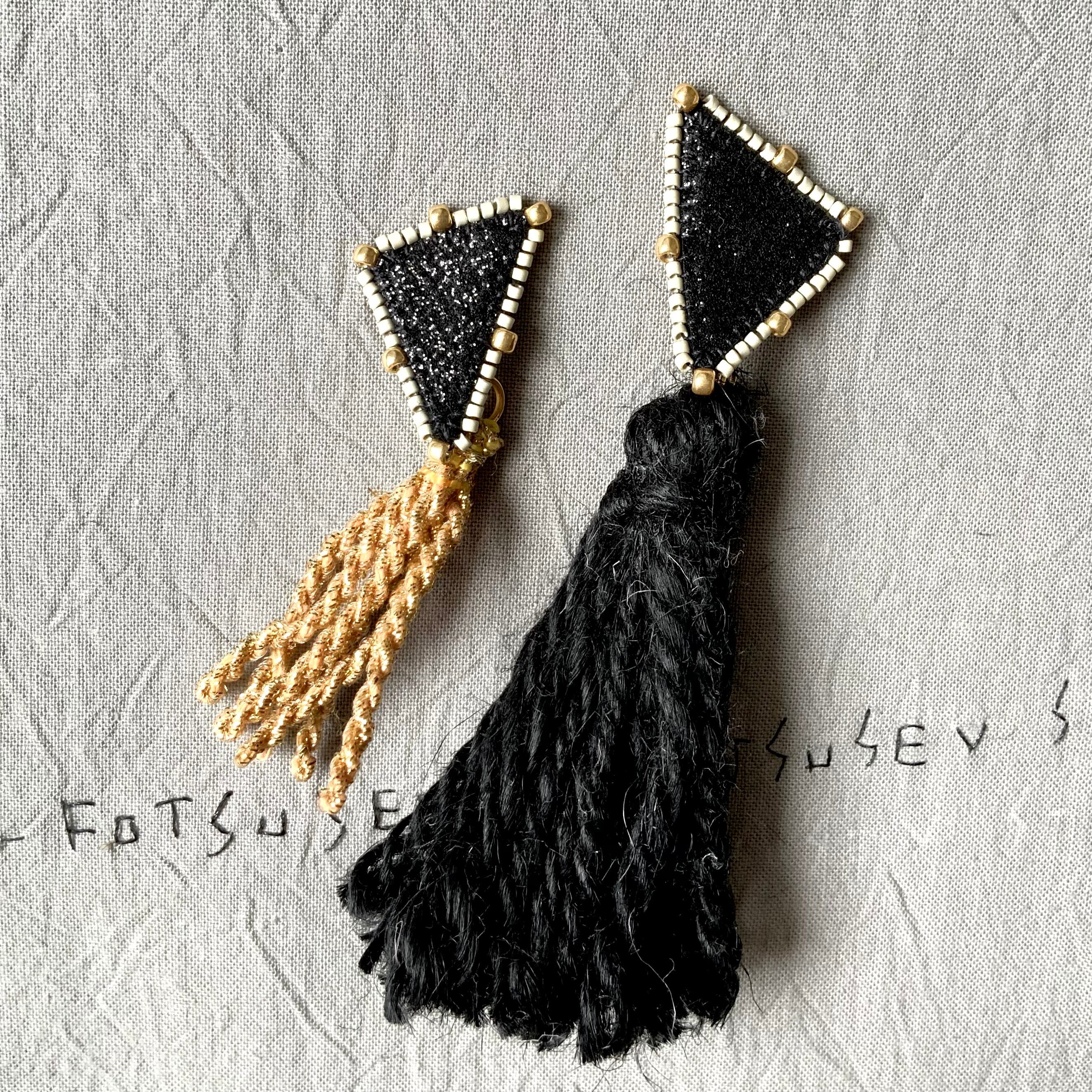 耳飾り7 片耳用 「黒さんかくと、タッセル」ピアス・イヤリング or 小さなブローチ/s-fotsusev
