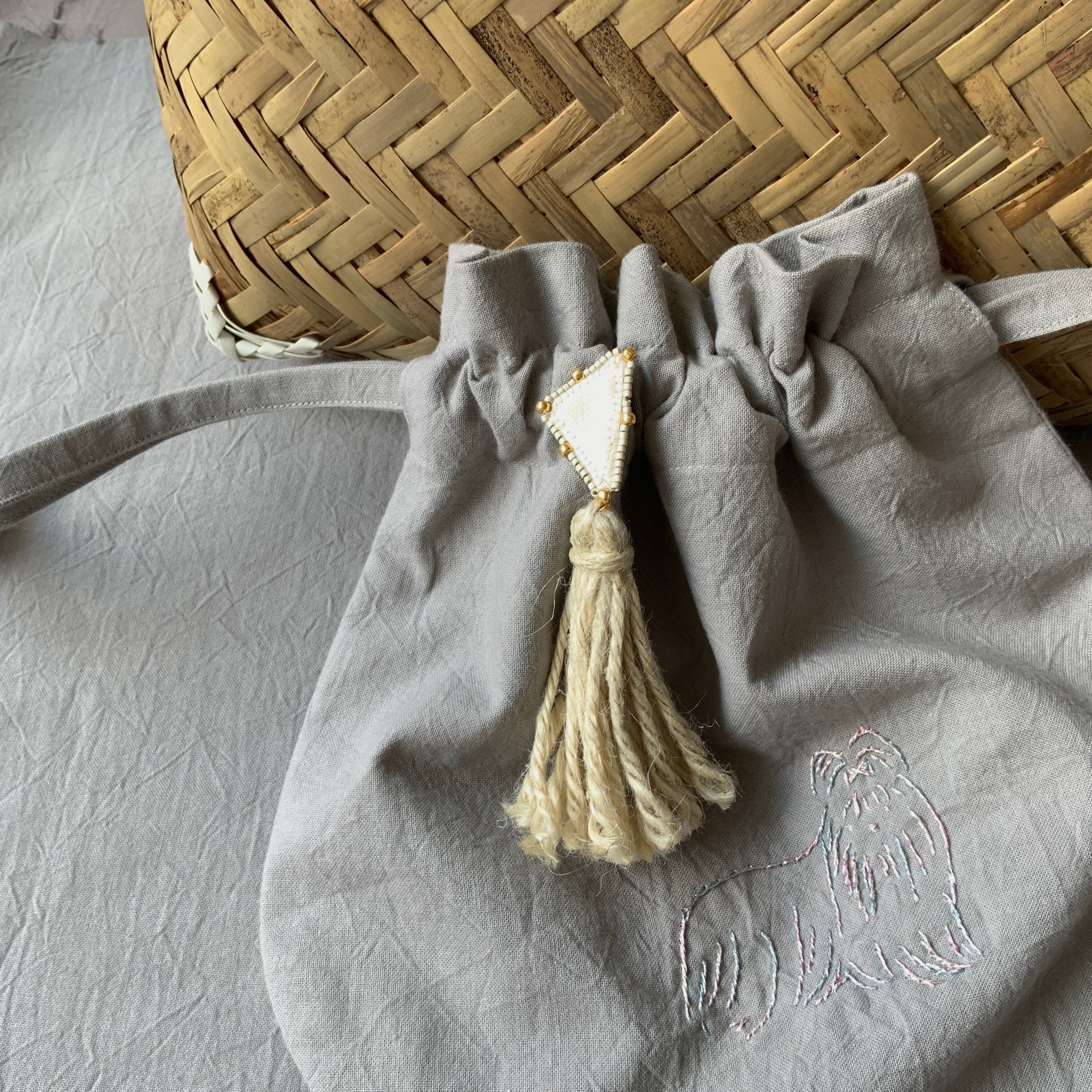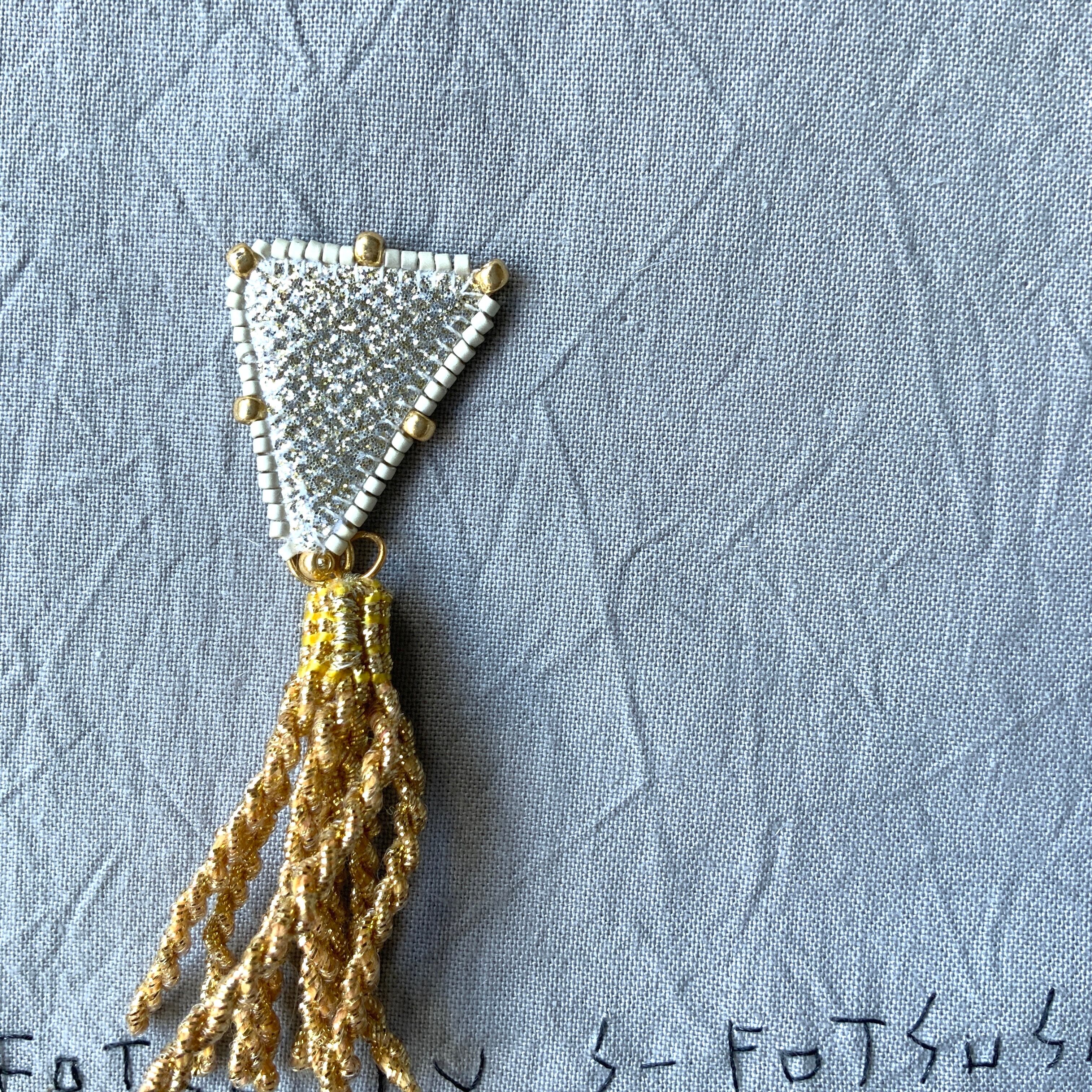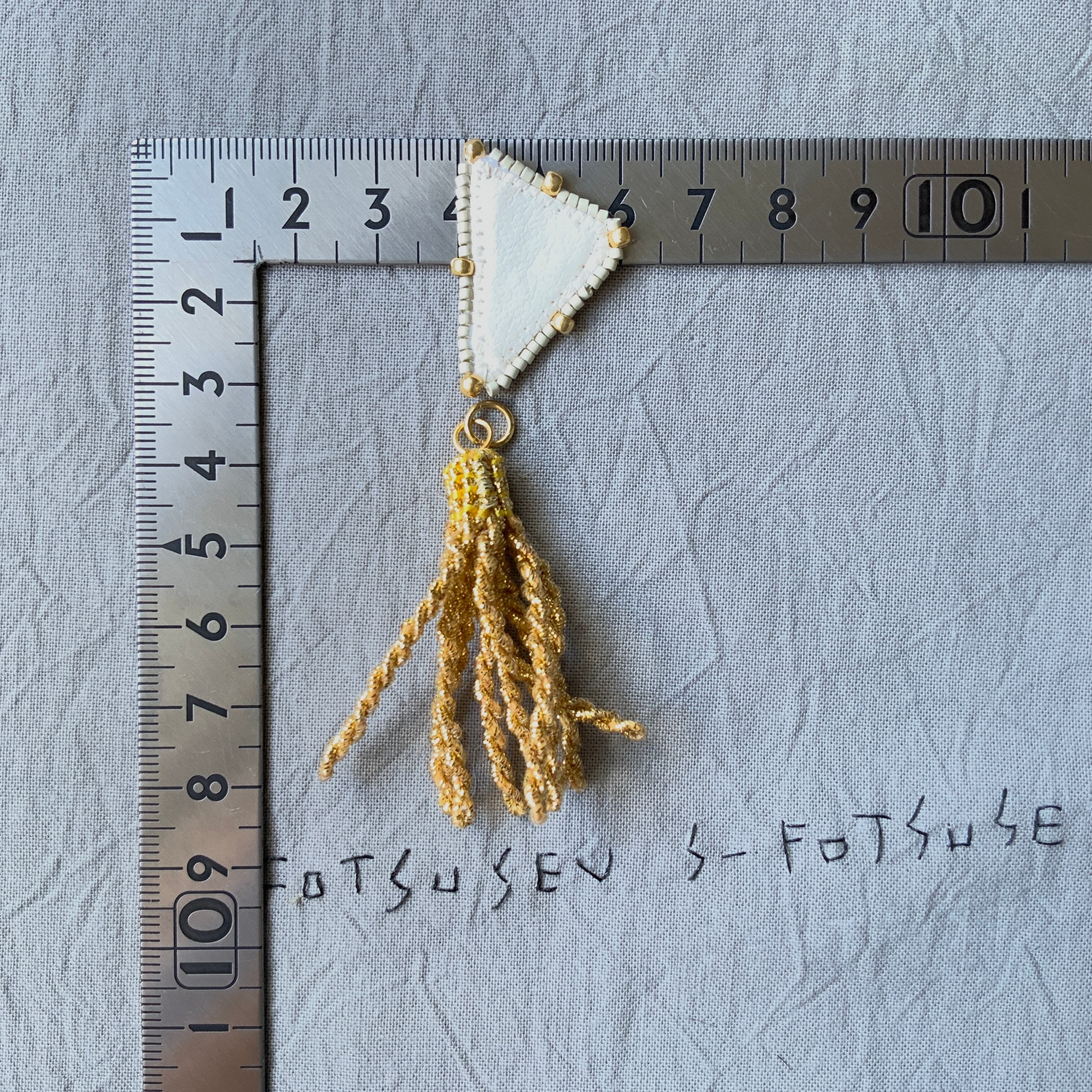 耳飾り10 片耳用 「白さんかくと、タッセル」ピアス・イヤリング or 小さなブローチ/s-fotsusev