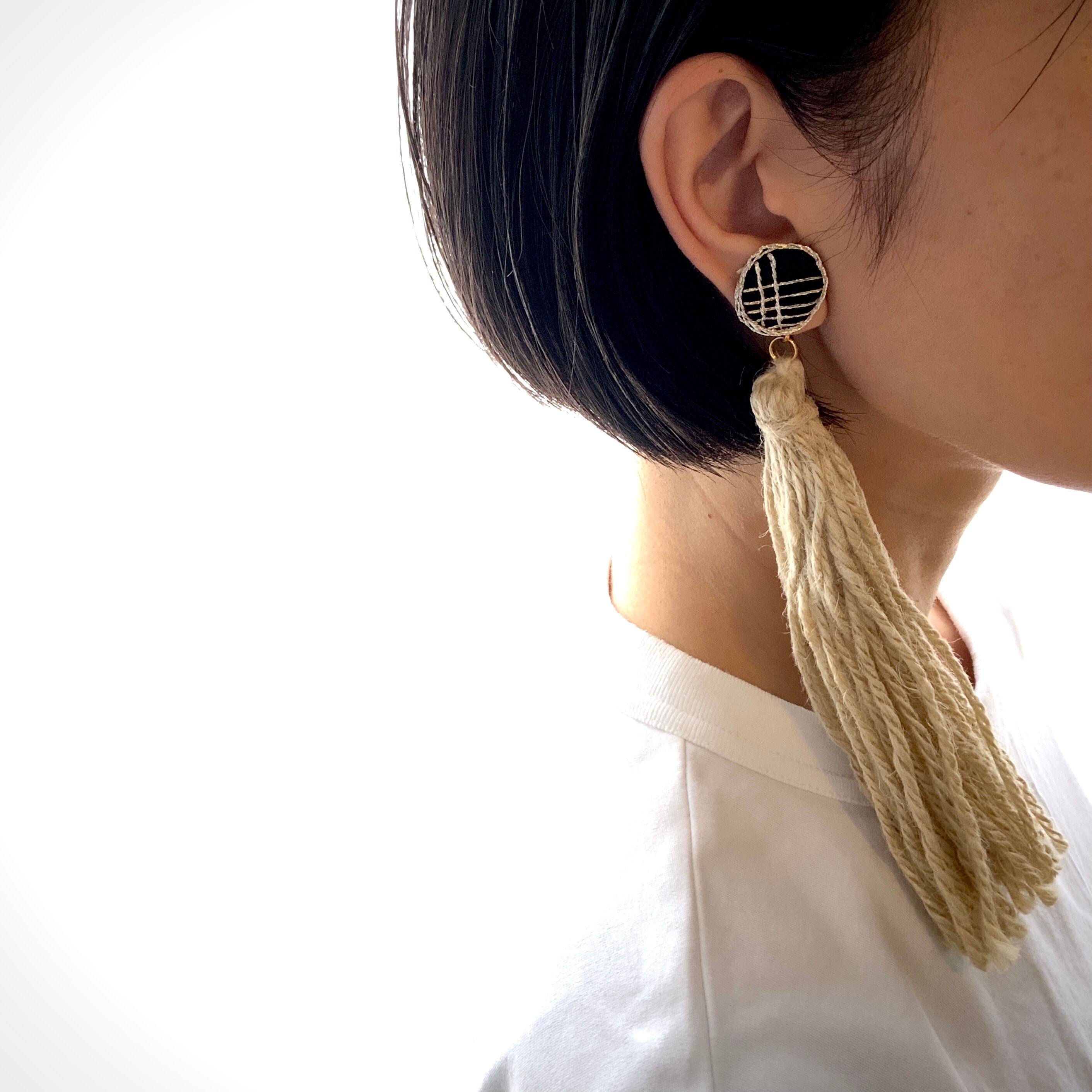 耳飾り11 片耳用 「まると、長タッセル」ピアス・イヤリング or 小さなブローチ/s-fotsusev