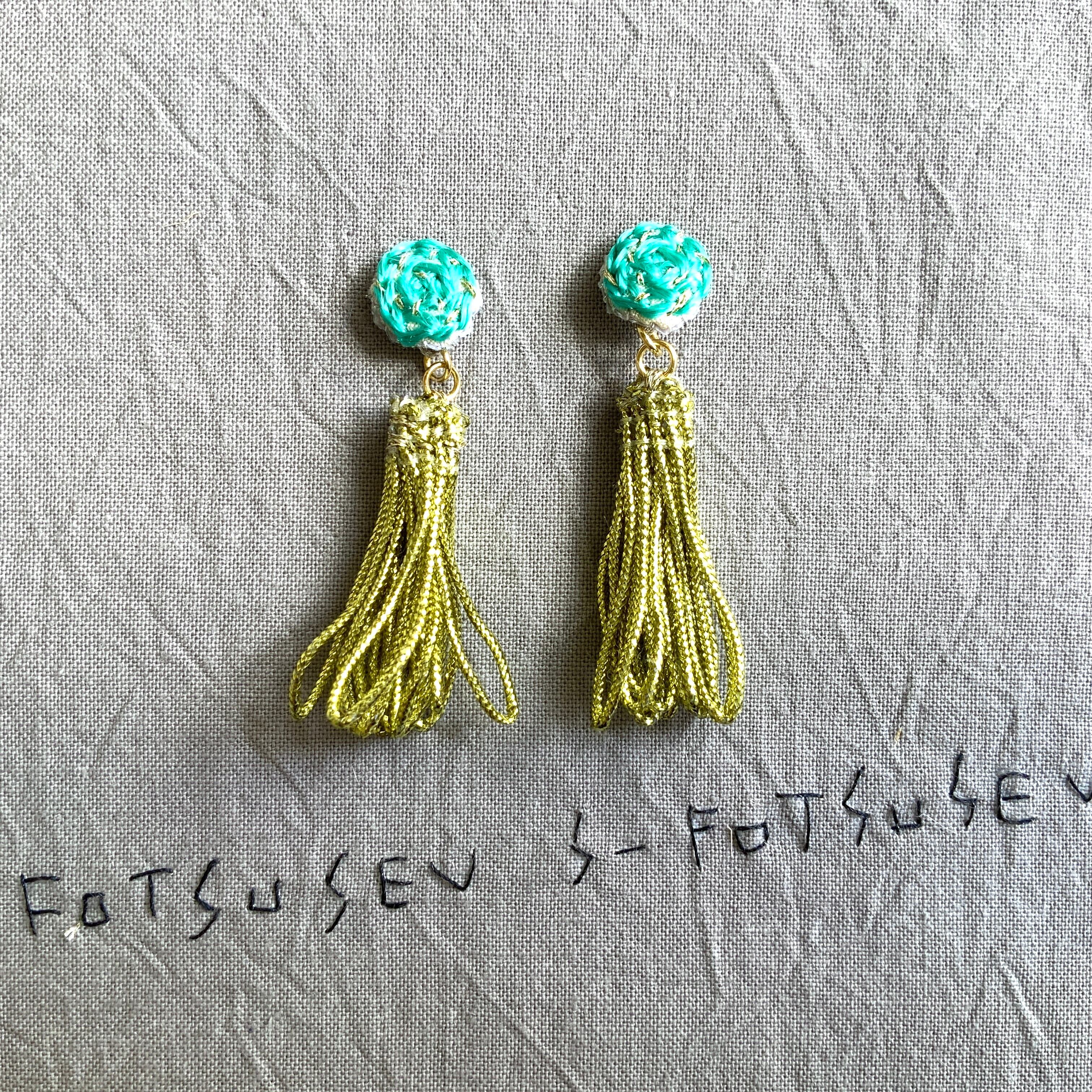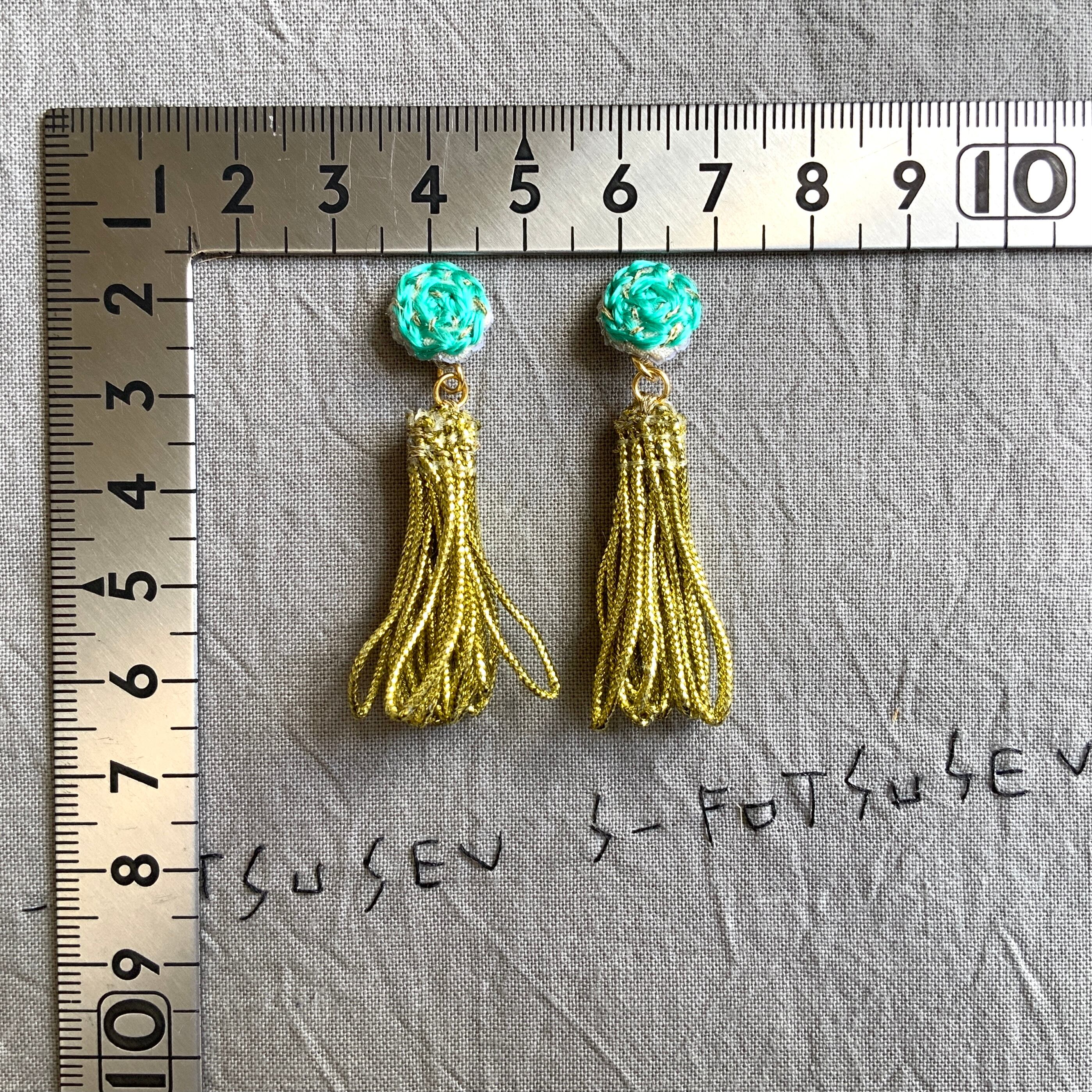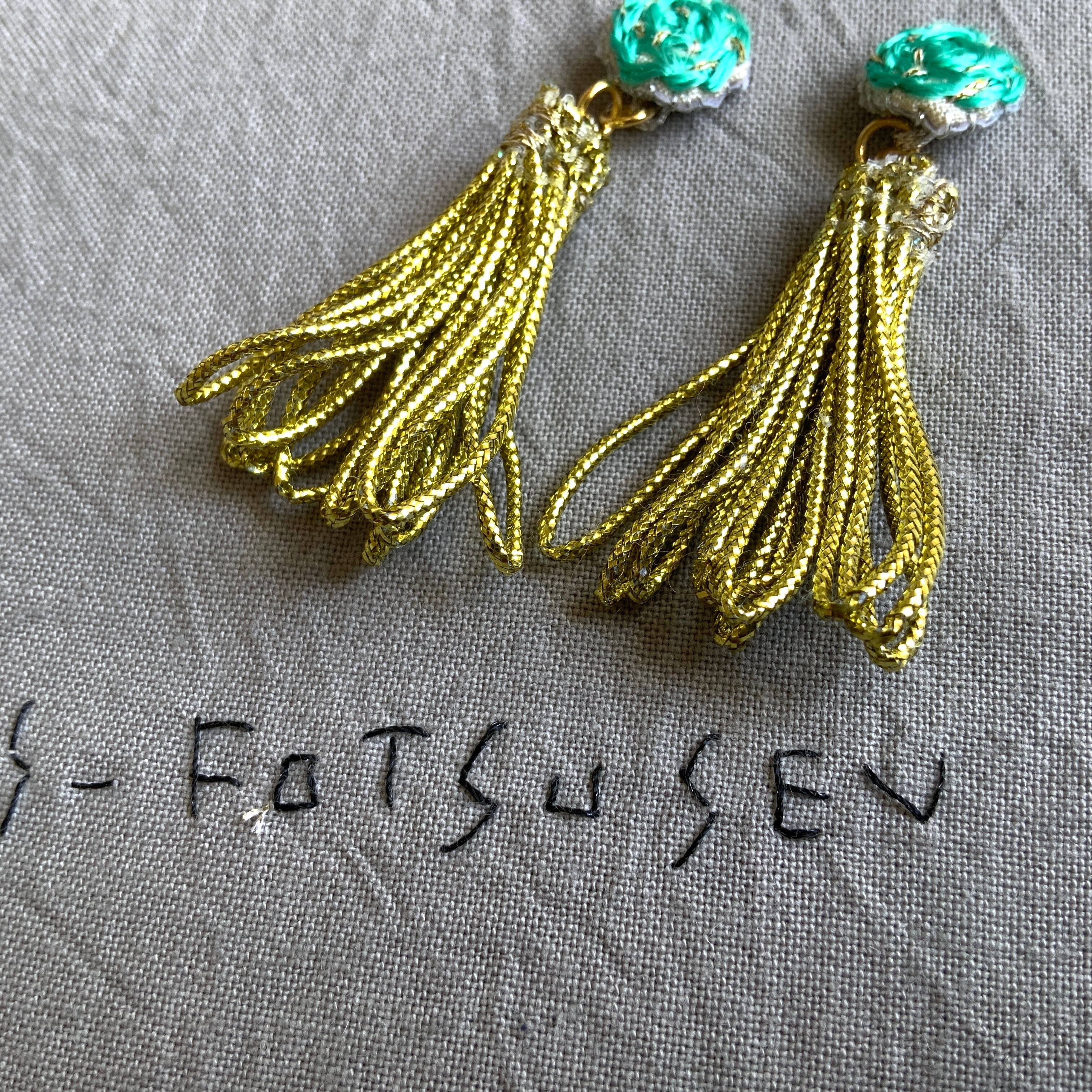 耳飾り 両耳用「蛍光グリーンと、金タッセル」ピアス・イヤリング/s-fotsusev