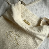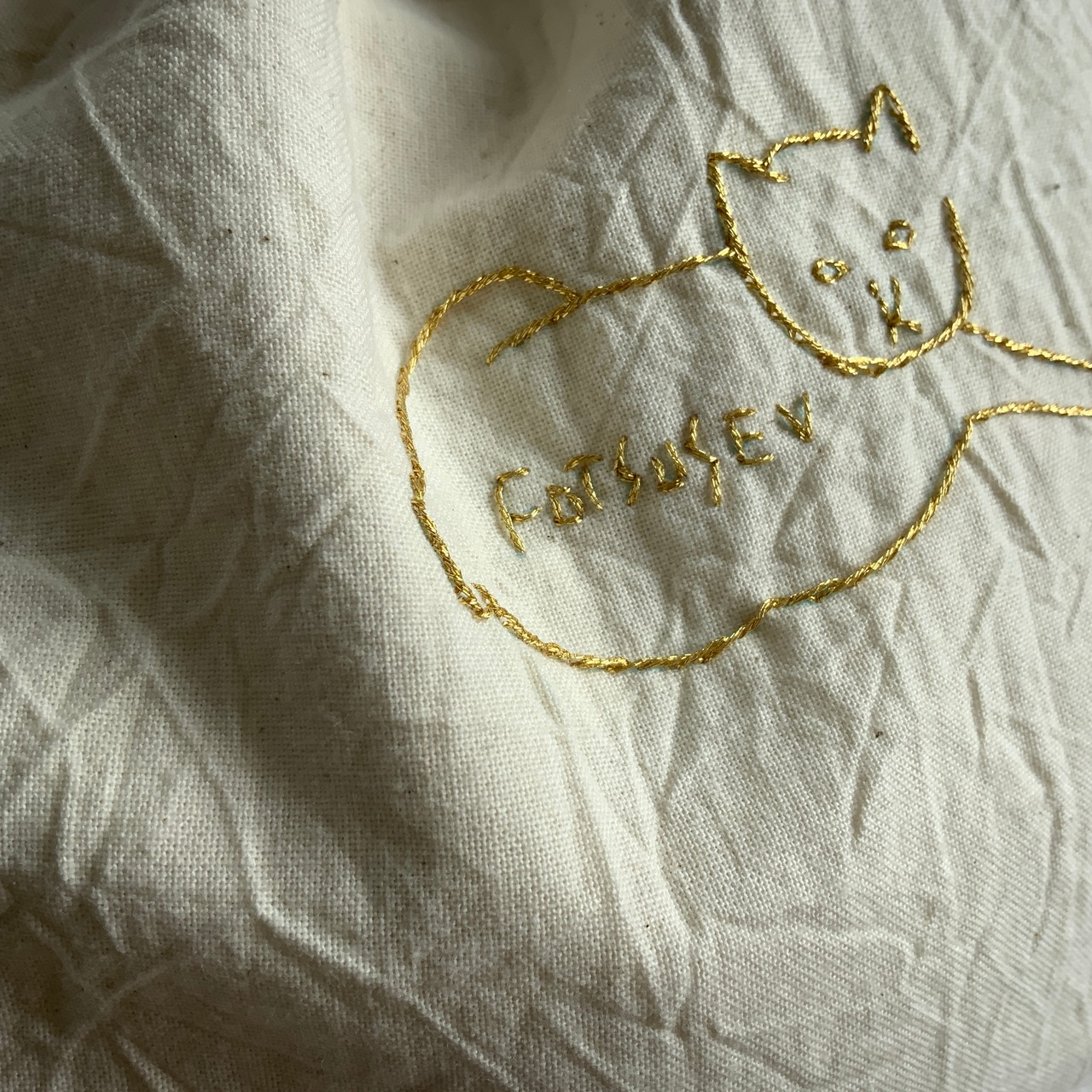 アイボリーのコットンワッシャー生地に、金色の糸。