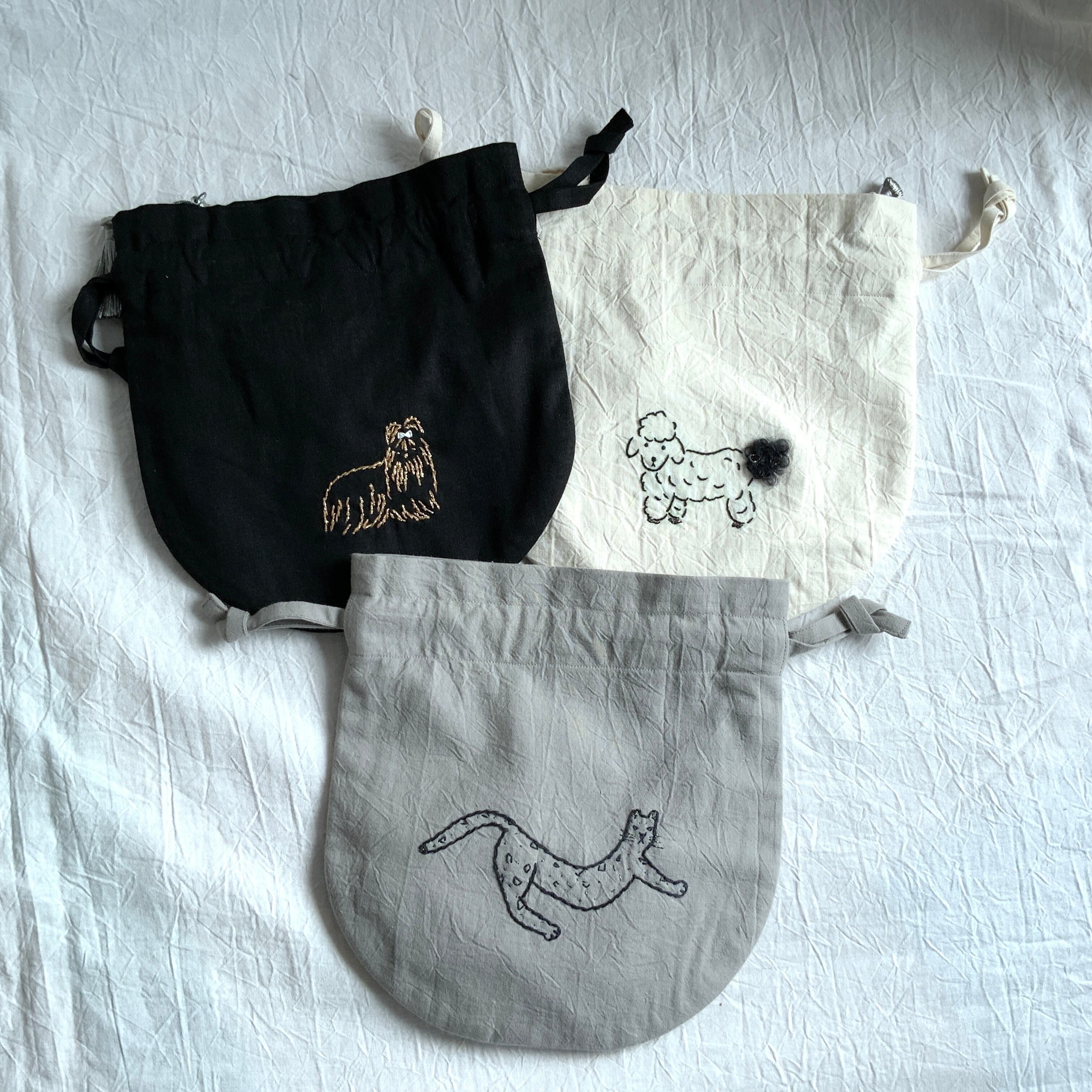 猫の刺繍入りの巾着です。
