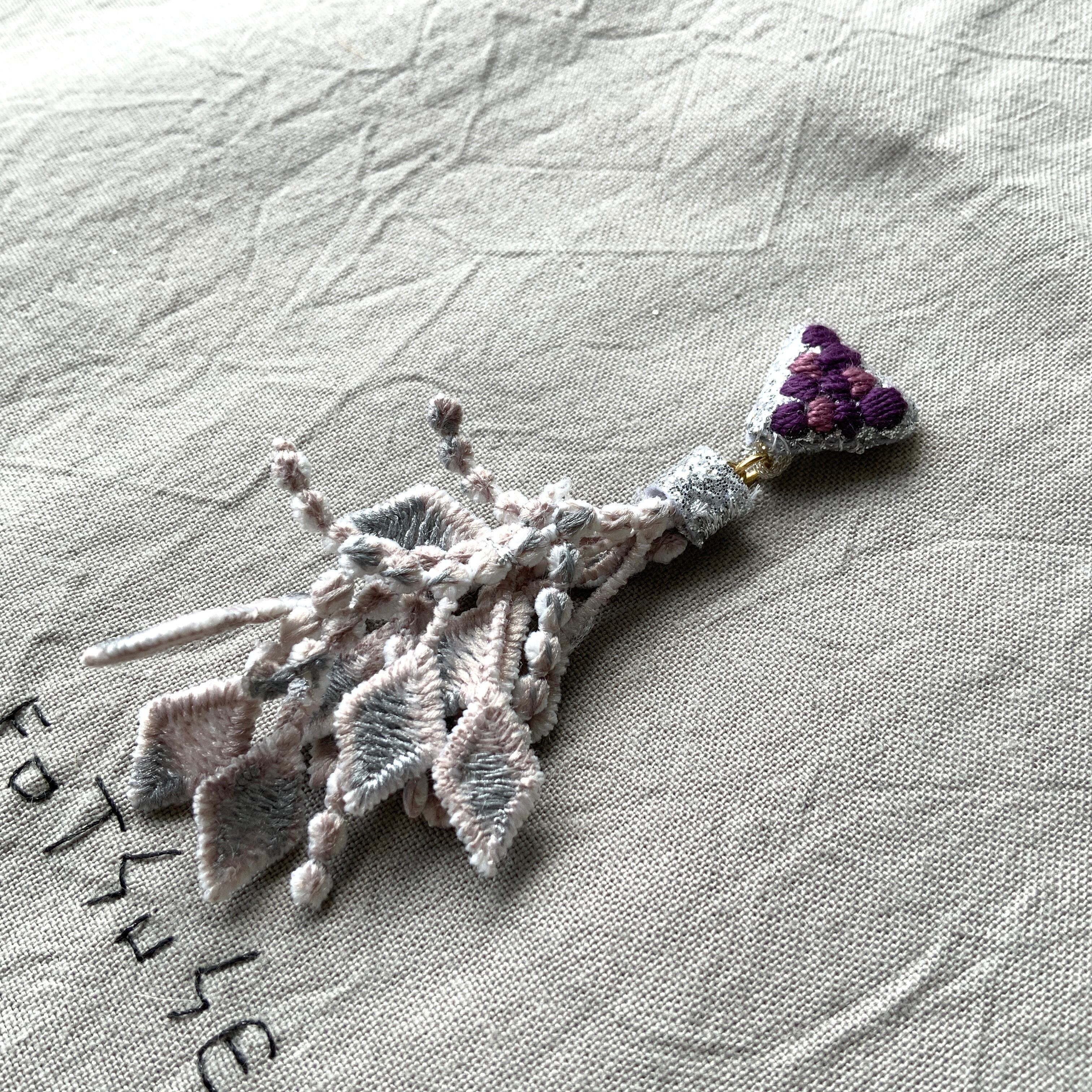 刺繍:ラメ合皮(表裏)、刺繍糸、