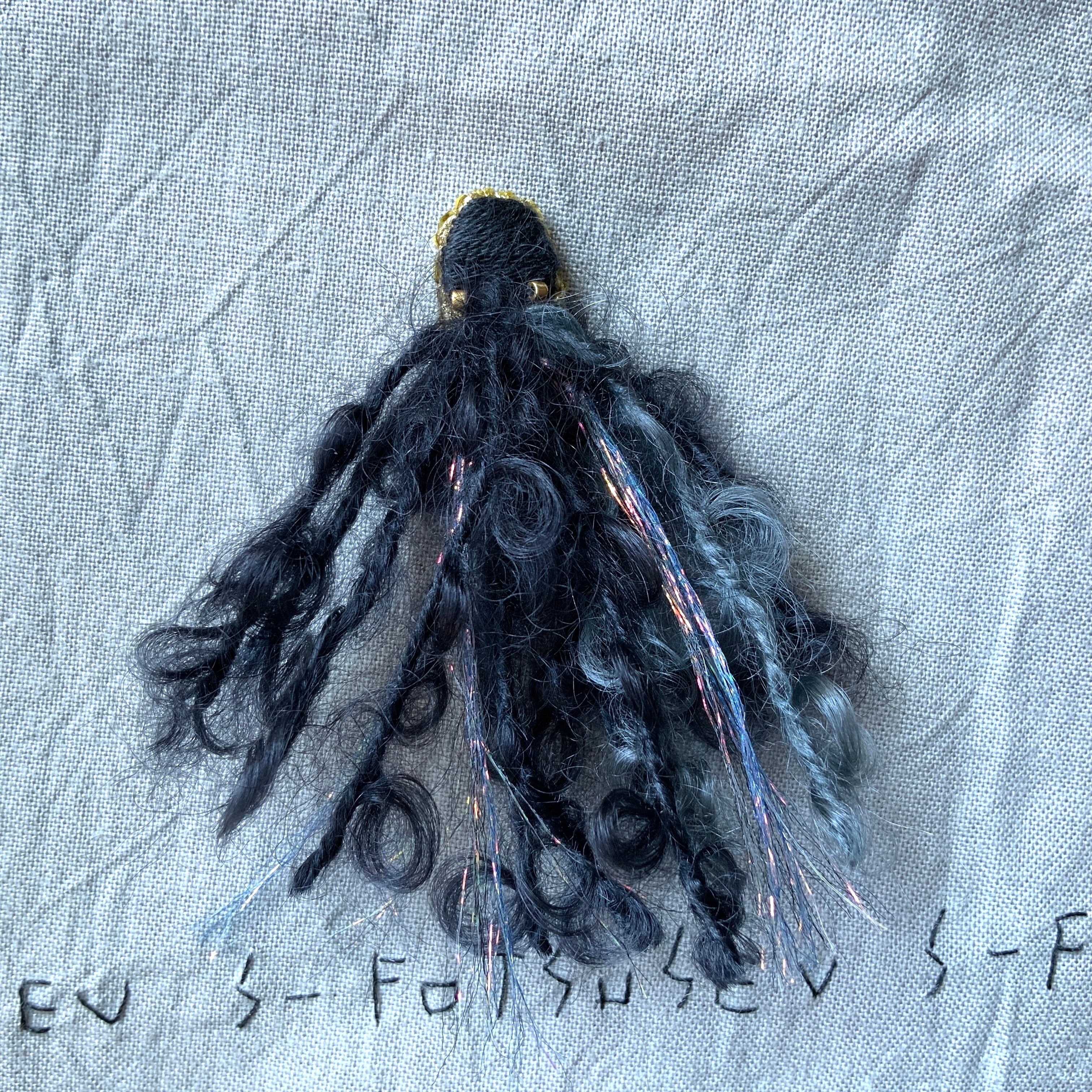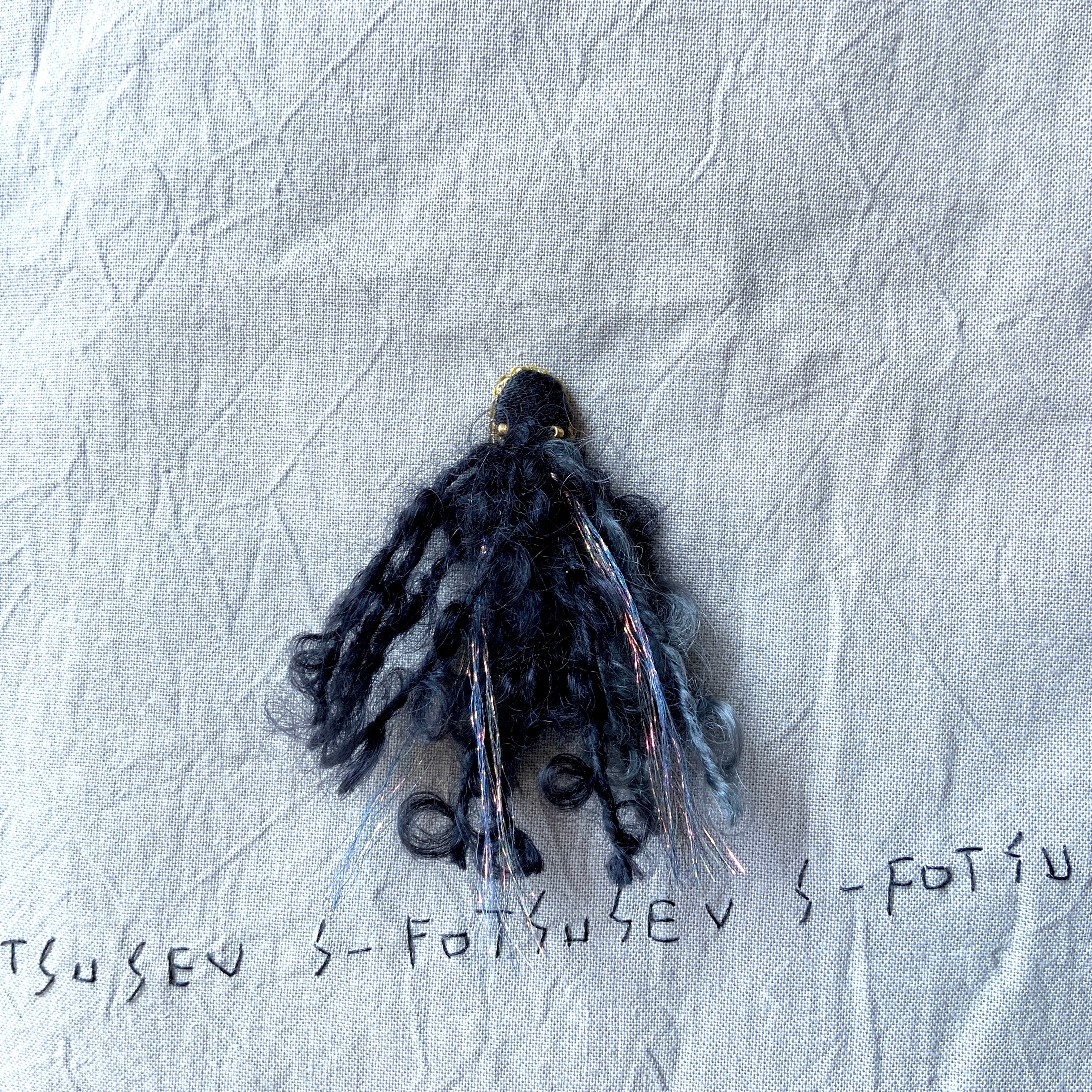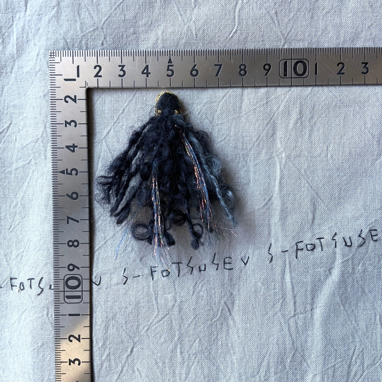 タコの足はところどころに、墨色ラメ糸&ホログラム風に光る糸を使っていて、