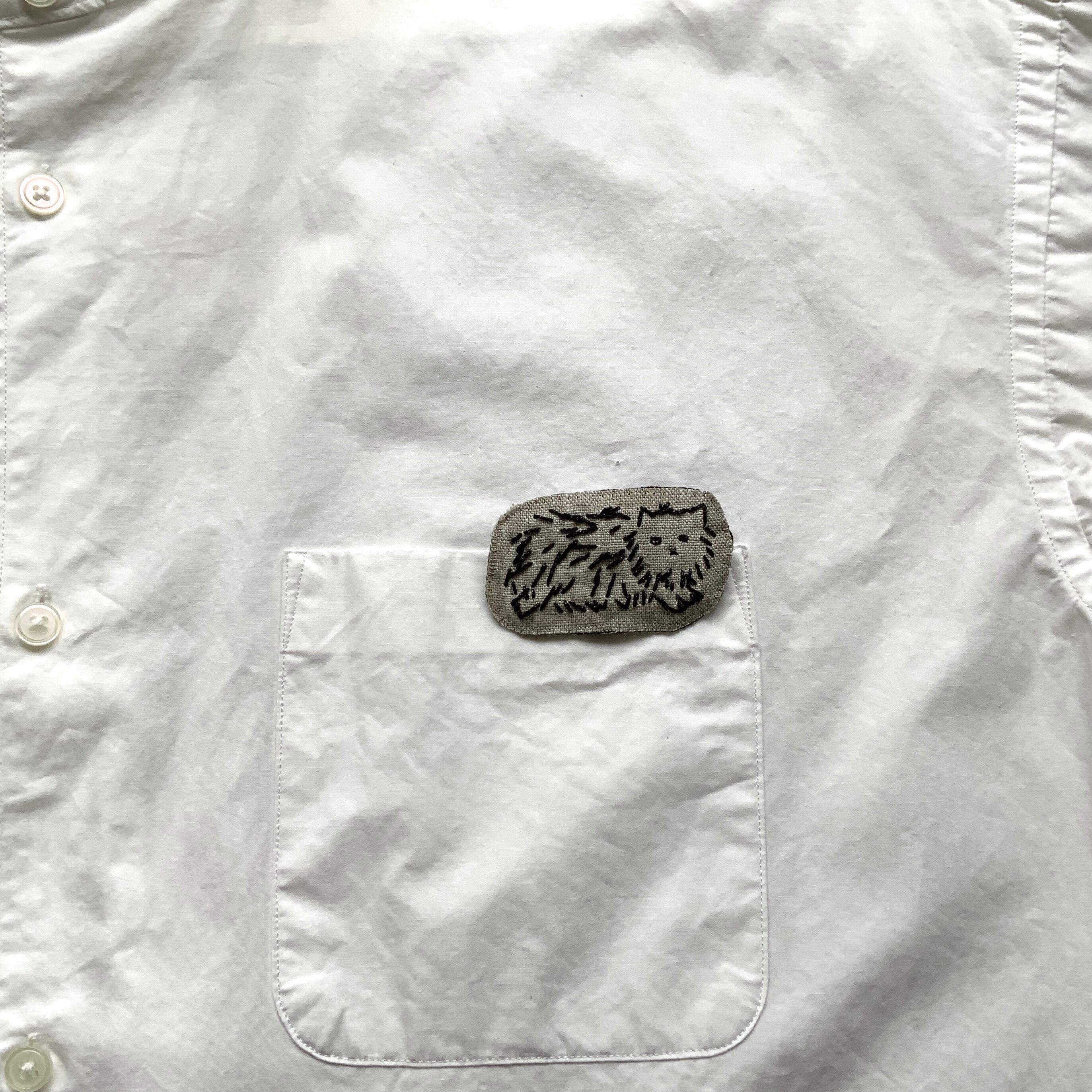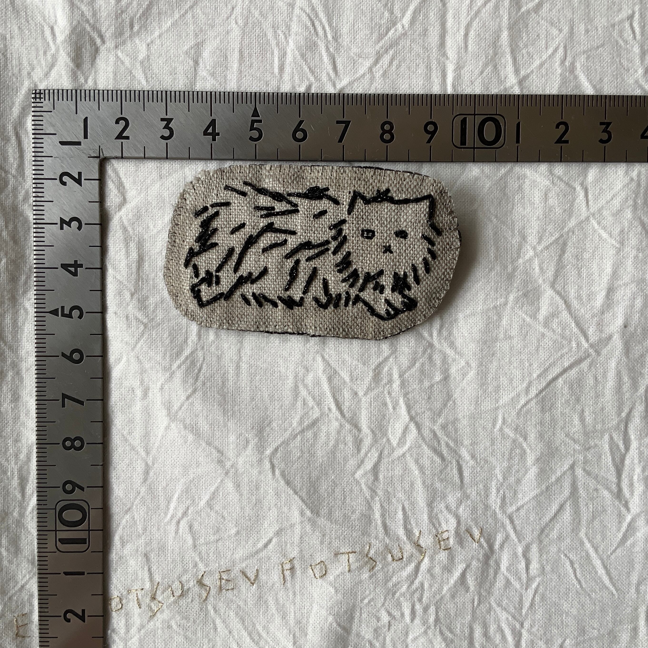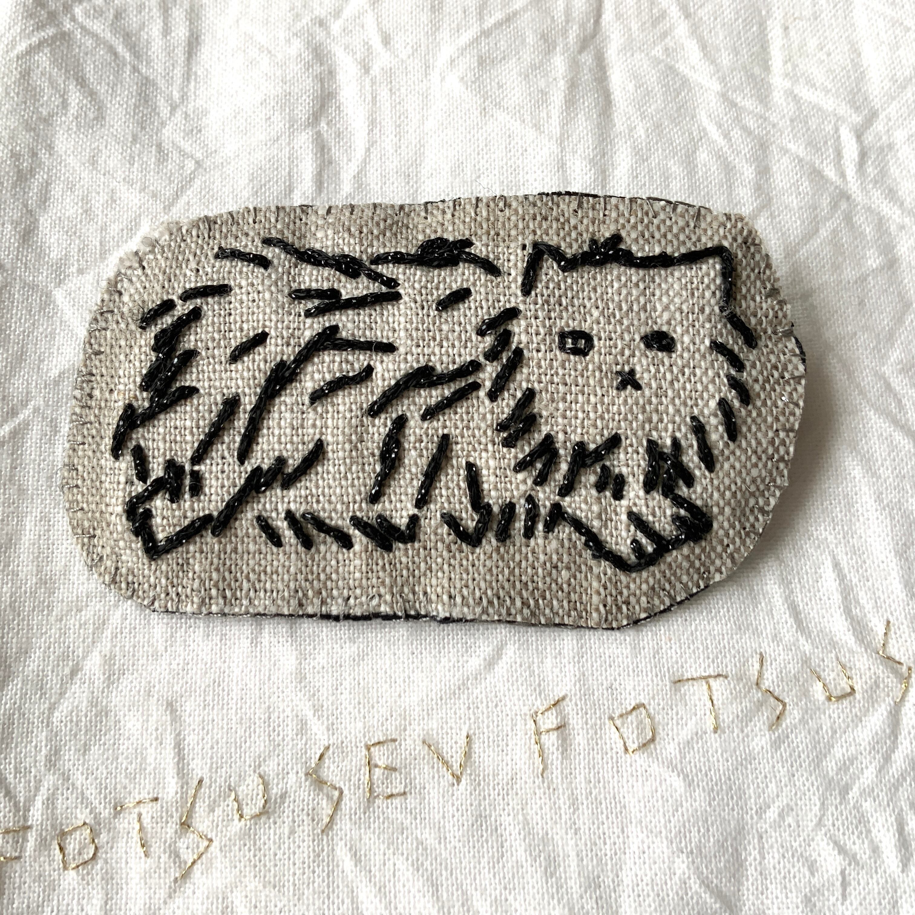 「モフ猫」ベージュリネン/シンプル刺繍ブローチ