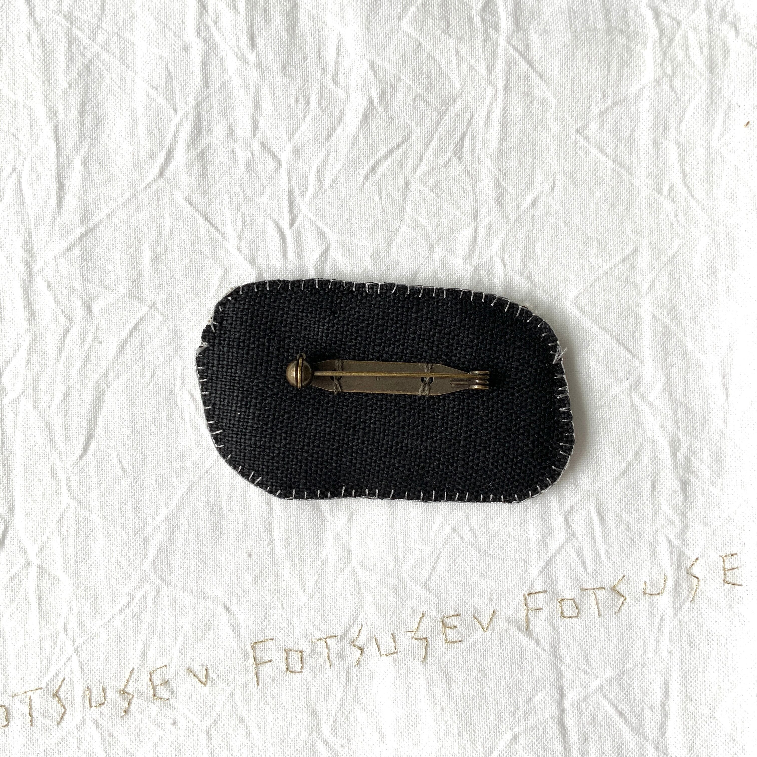 麻、刺繍糸、回転式ブローチピン(日本製)