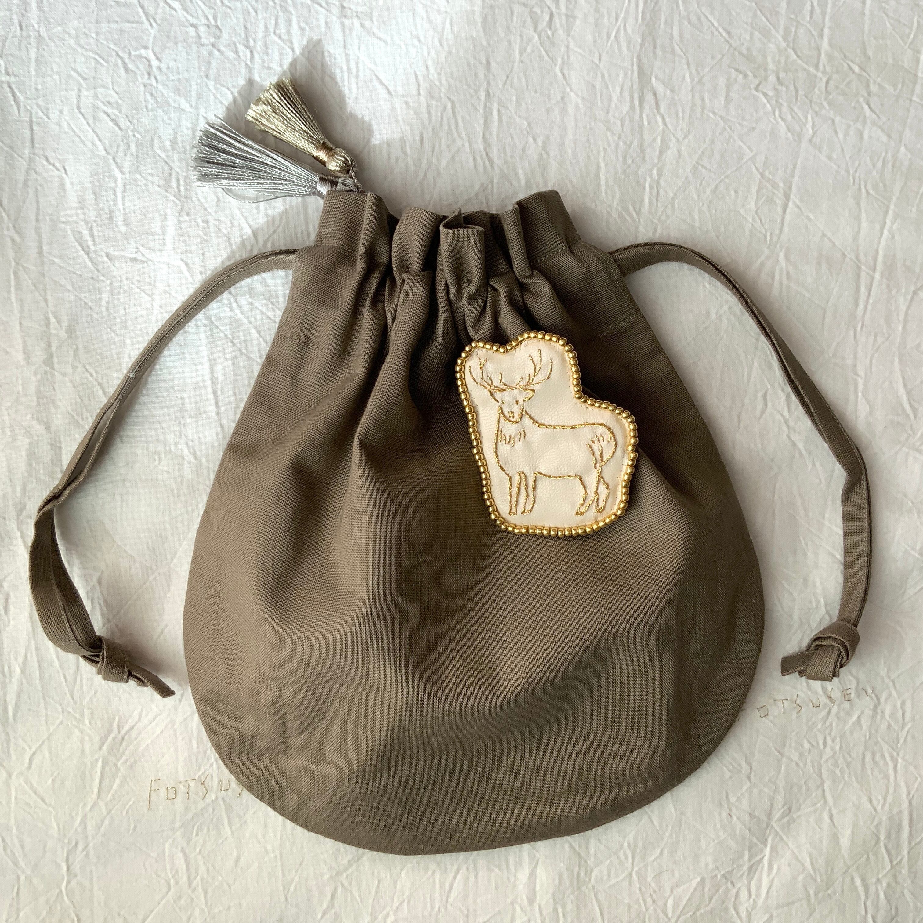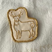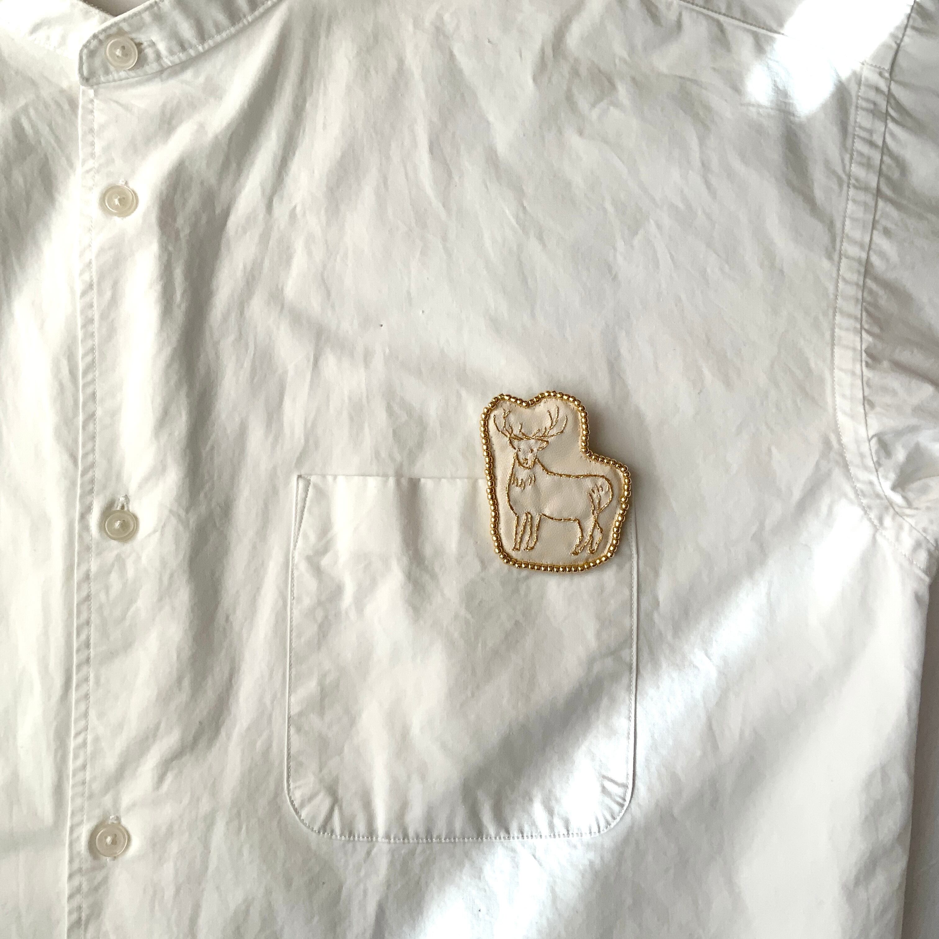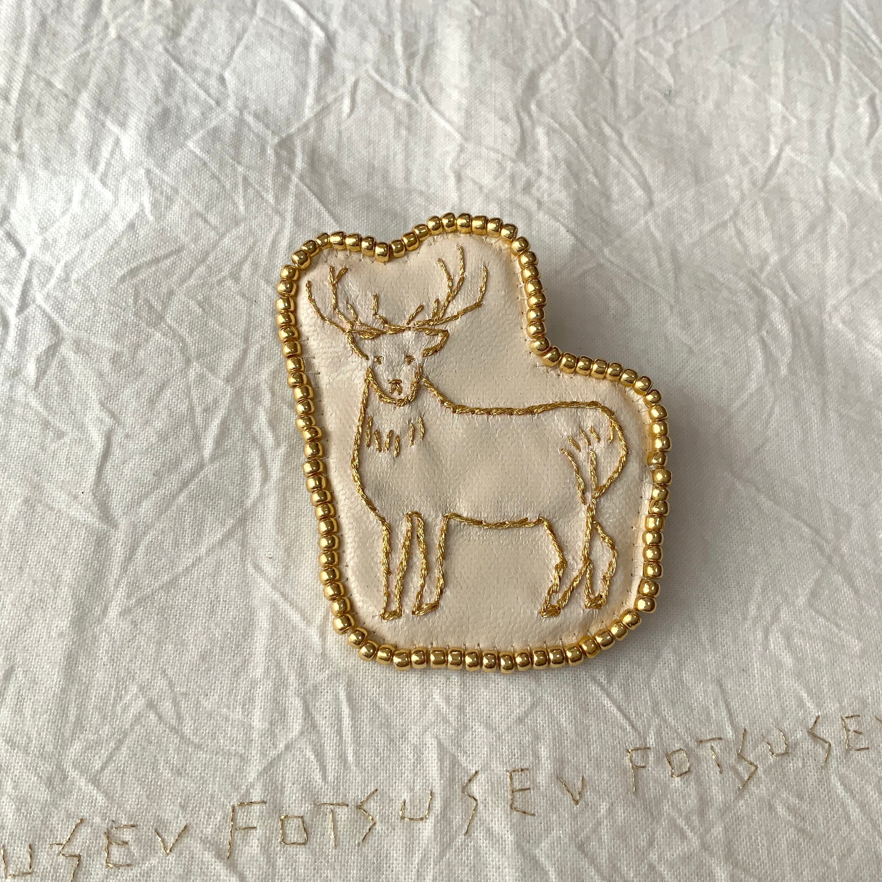 「鹿・ビーズ」 刺繍ブローチ1 (チャームフック付)