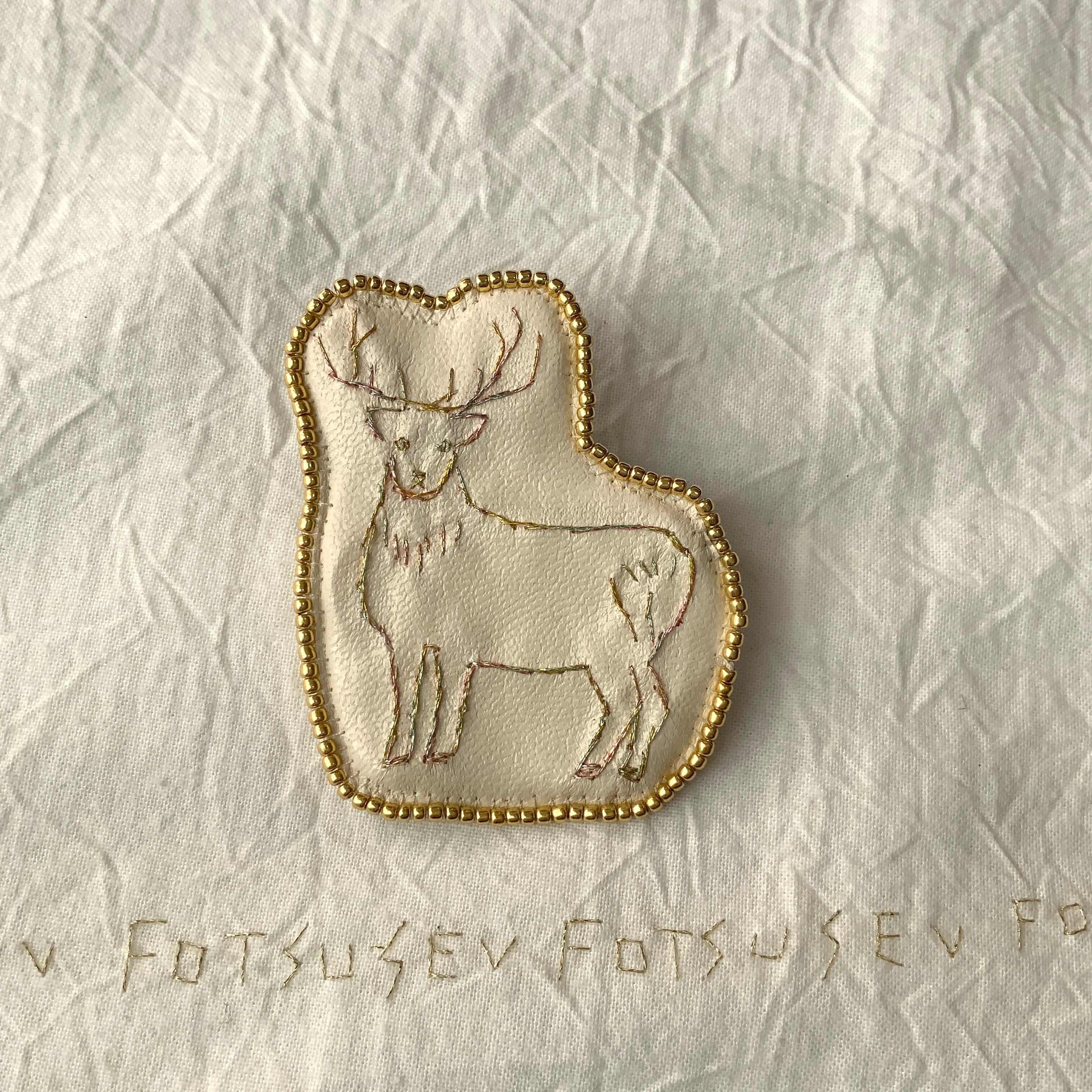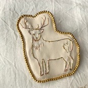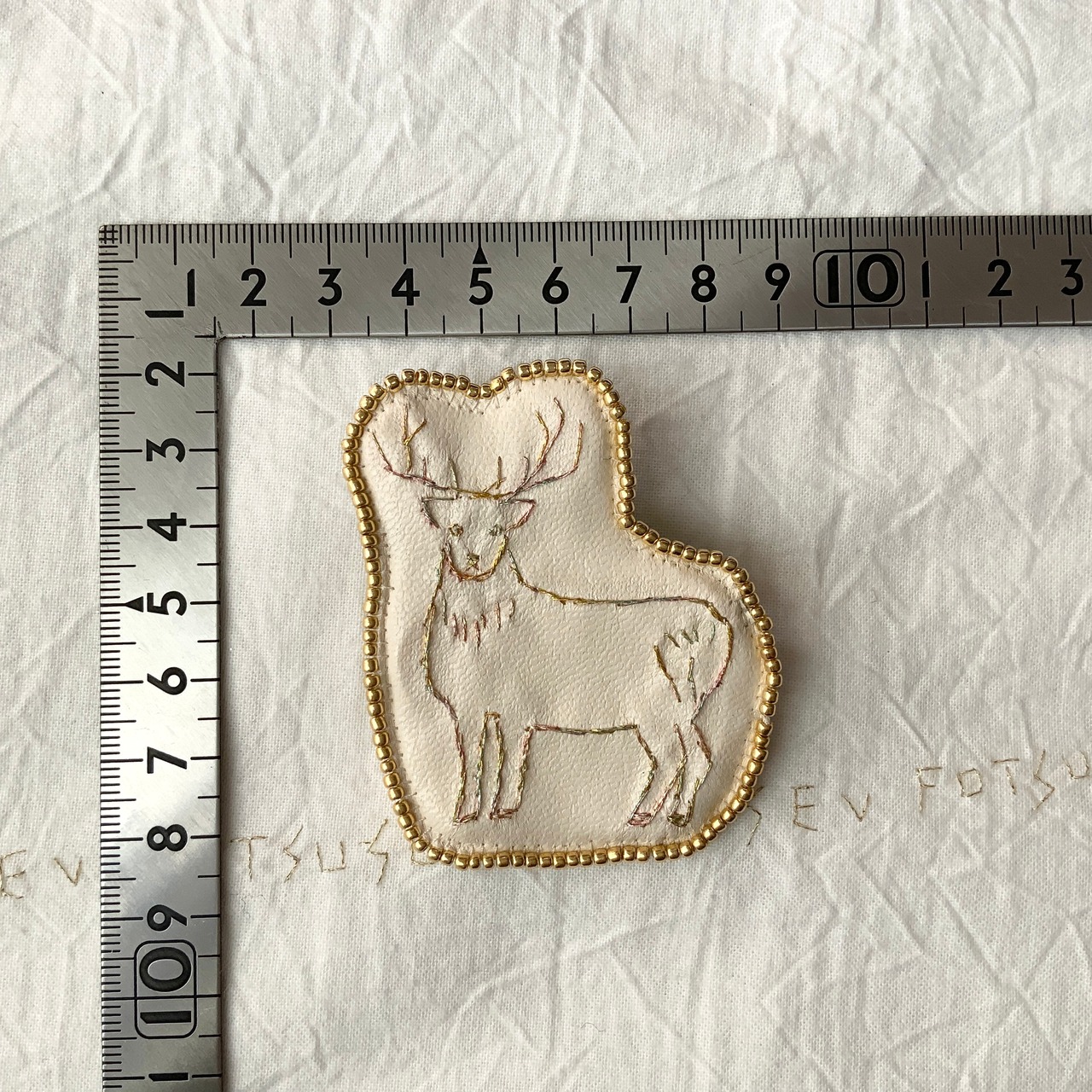 「鹿・ビーズ」 刺繍ブローチ2 (チャームフック付)