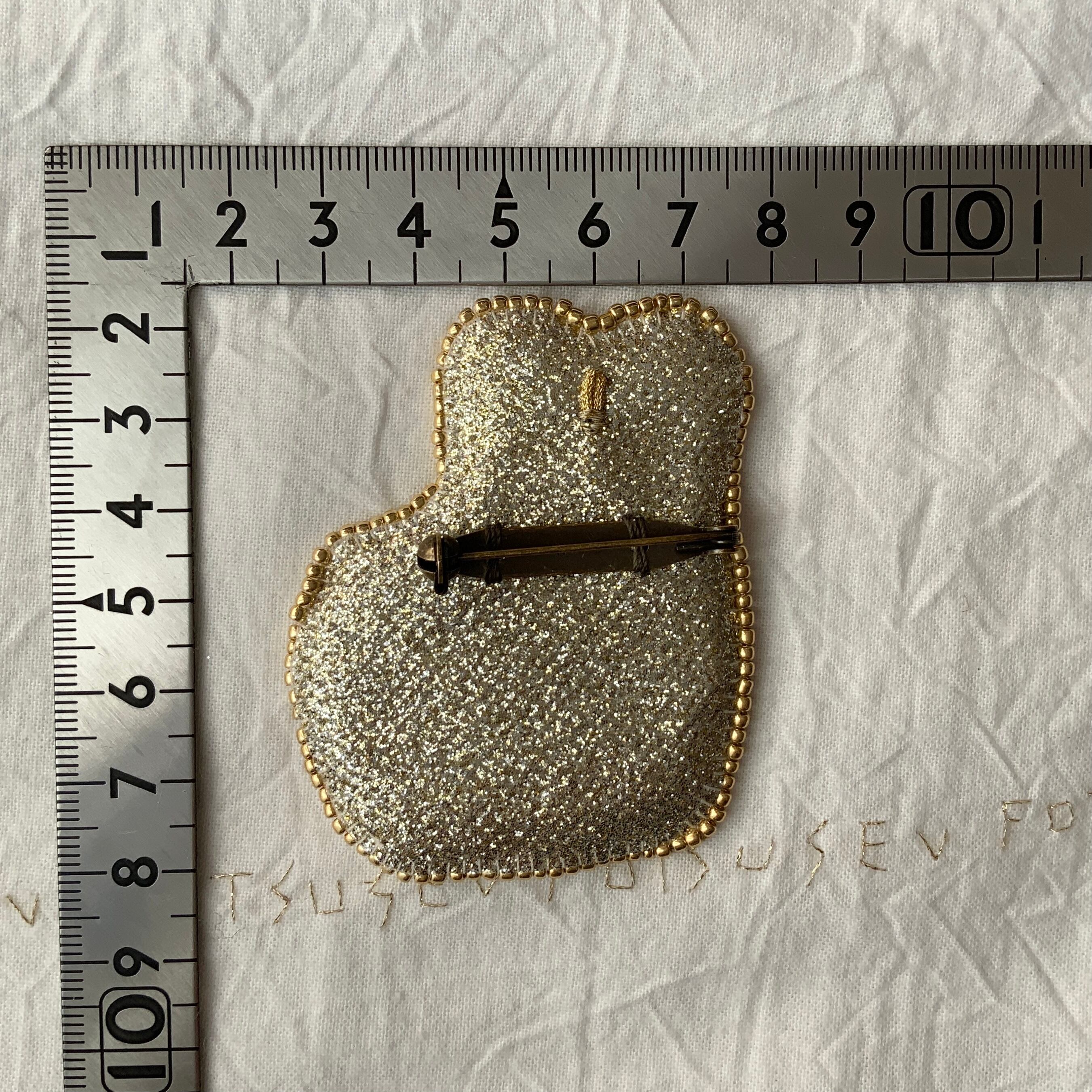 合皮、刺繍糸、ビーズ、回転式ブローチピン(日本製)
