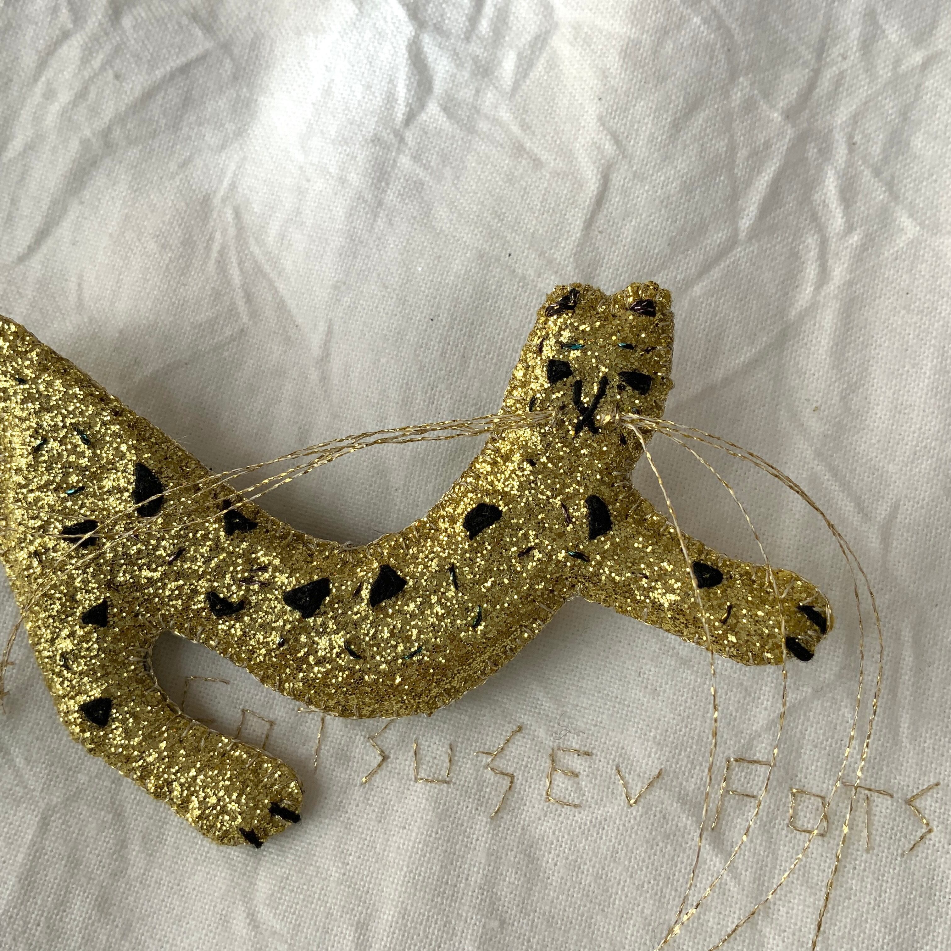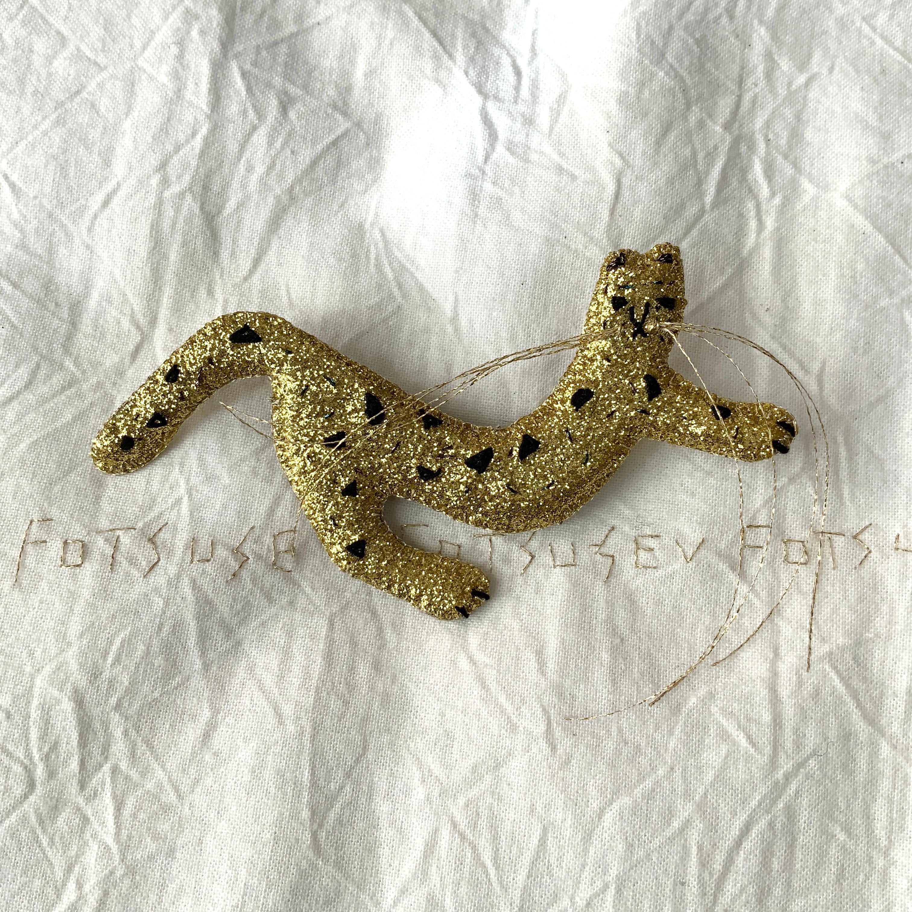 「ヒョウ キラキラ」ゴールド/刺繍ブローチ
