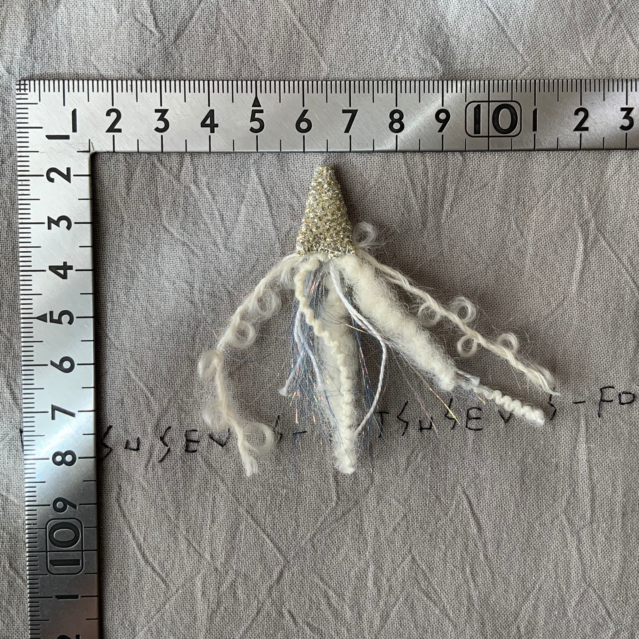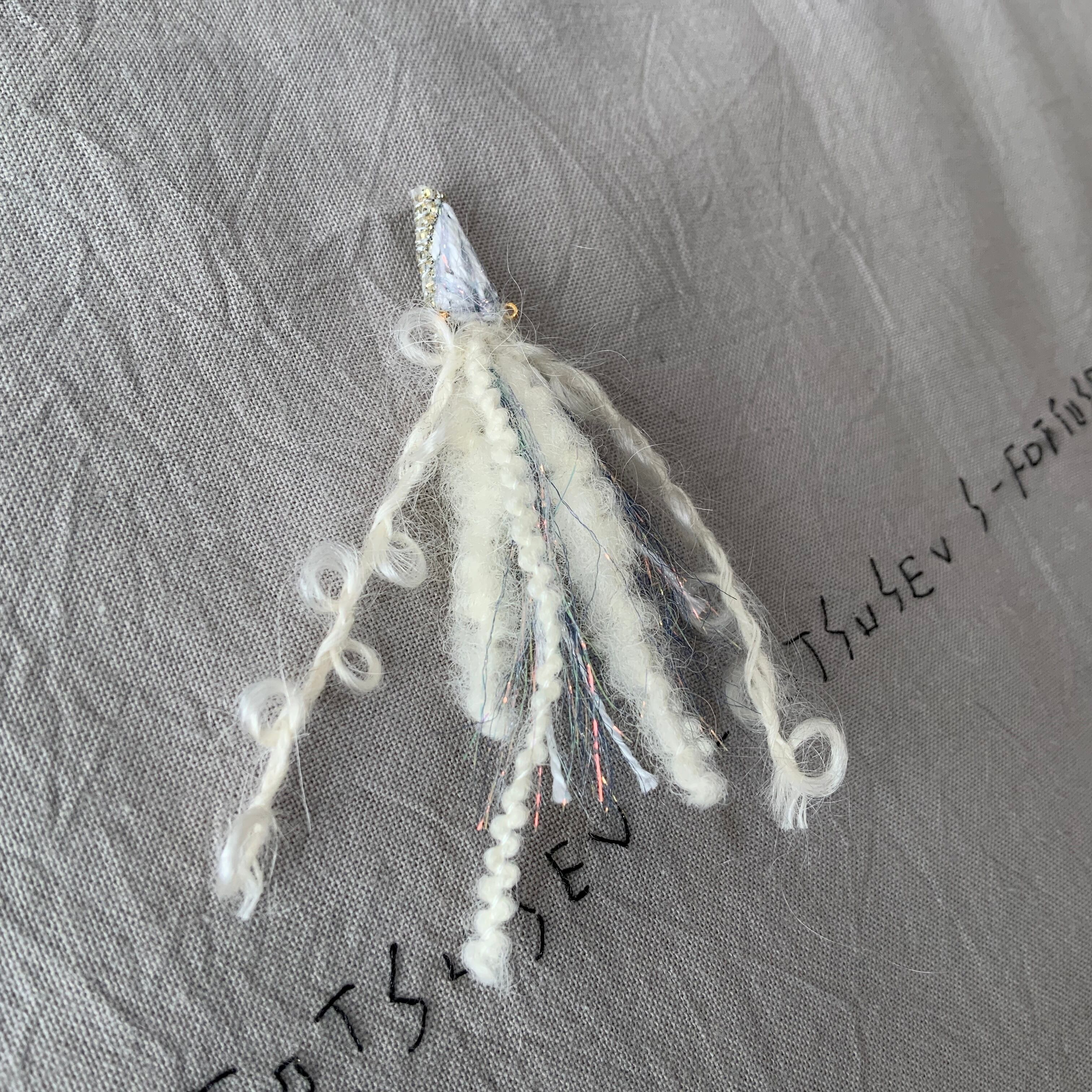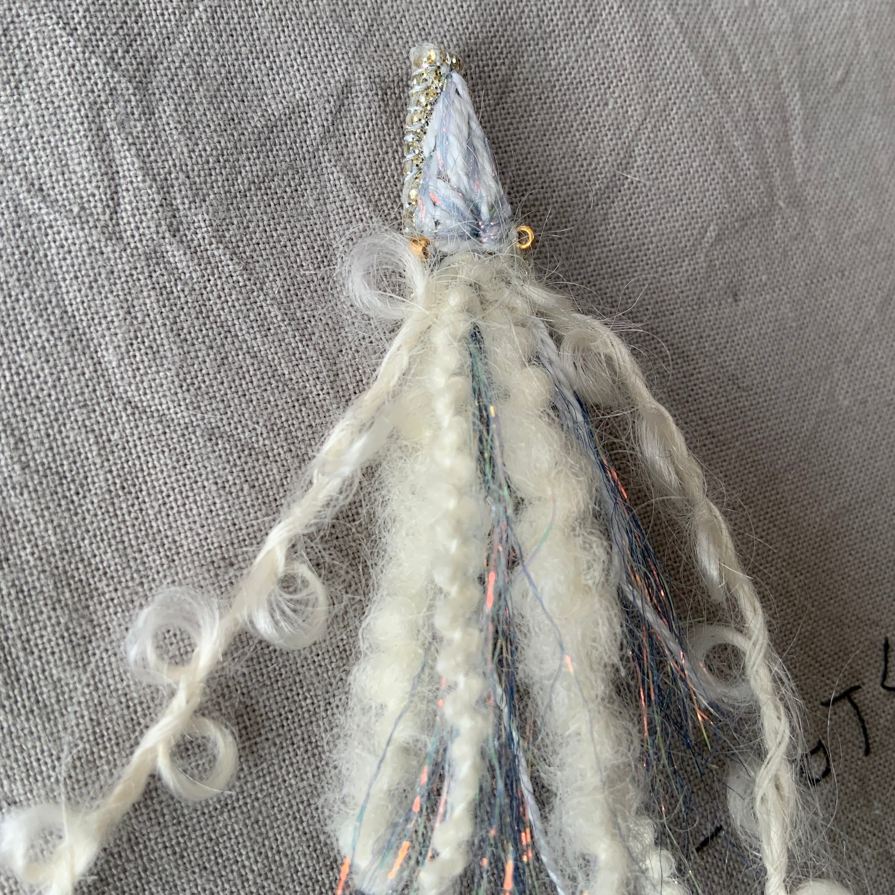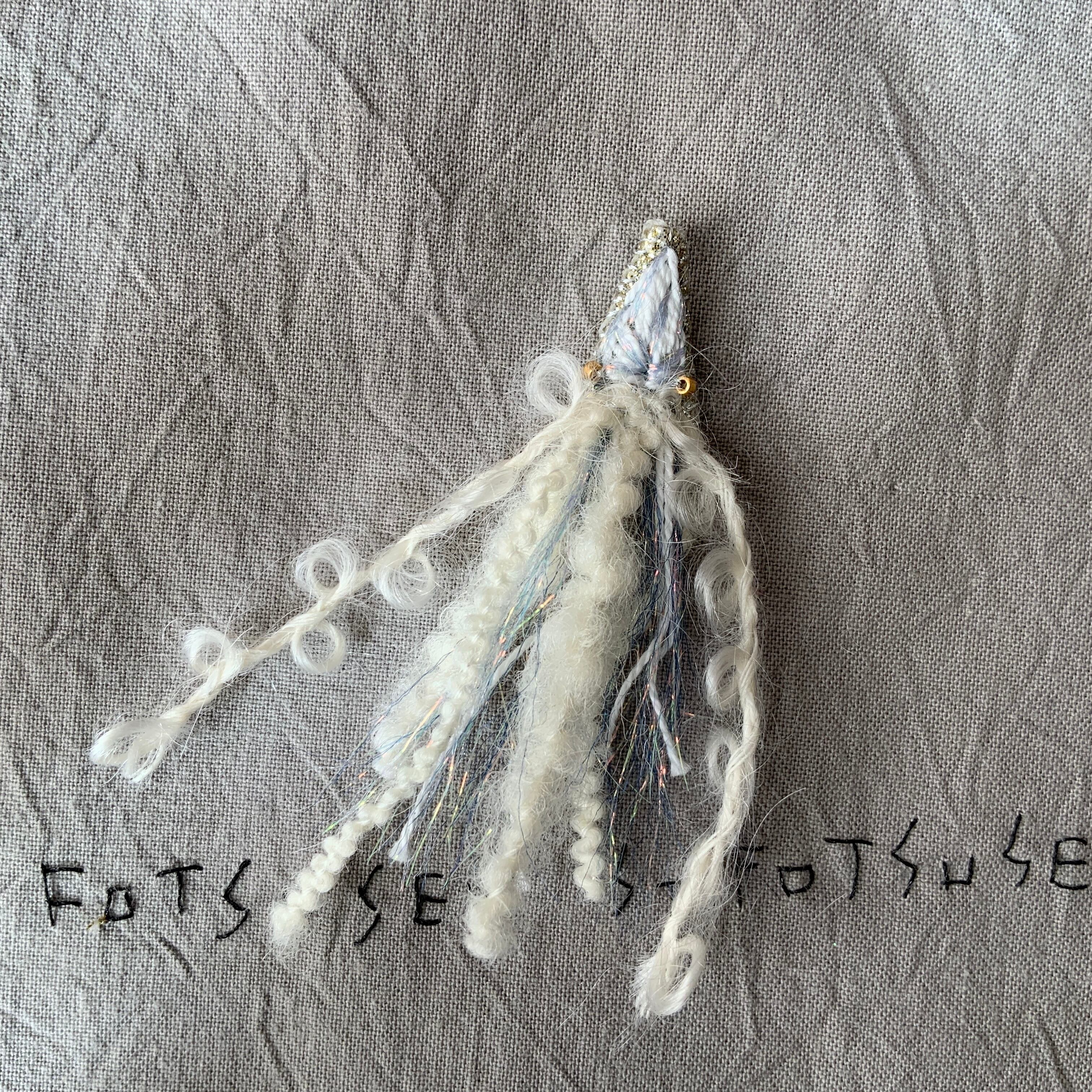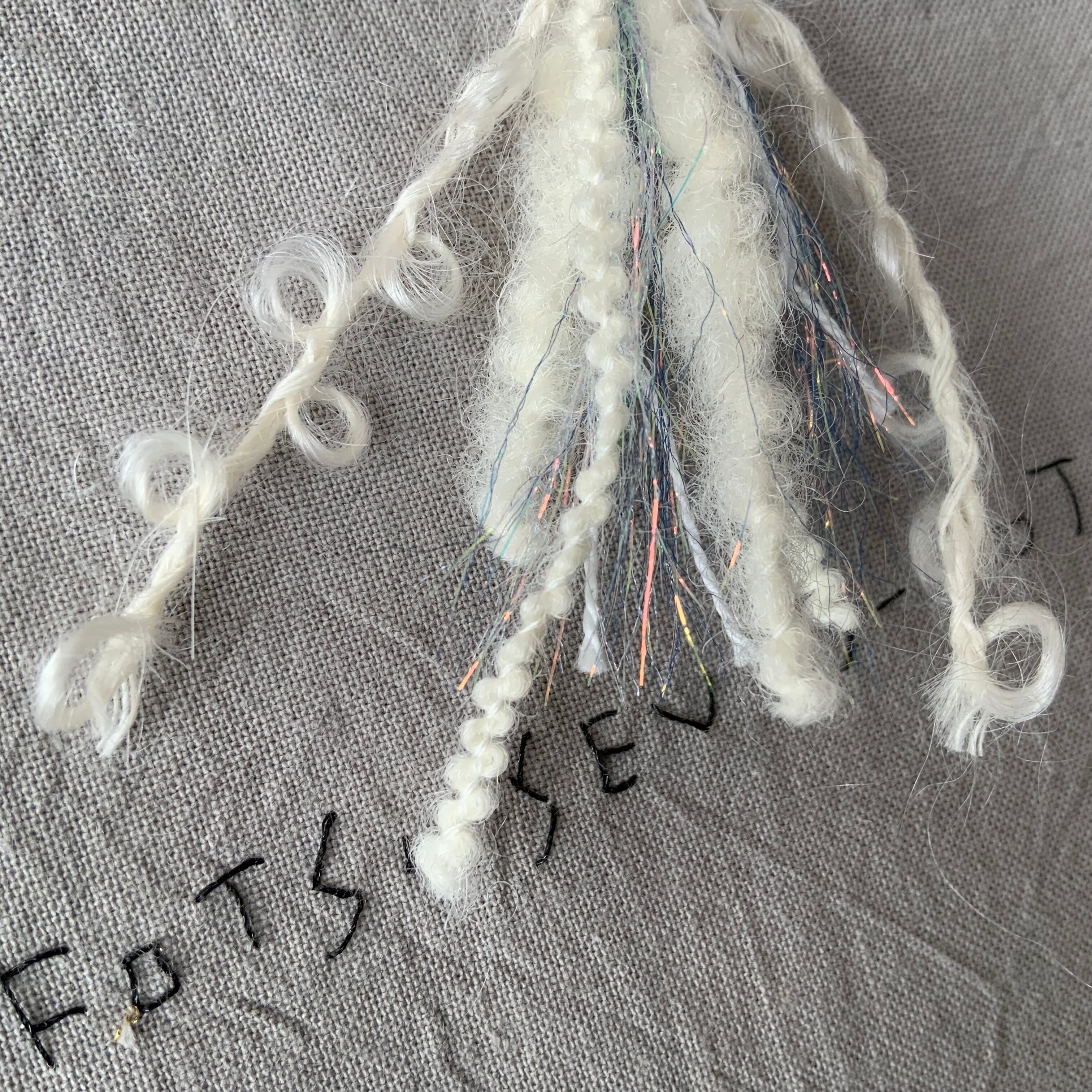 数種類の白糸と、ラデンのようなラメ糸をミックスしています。