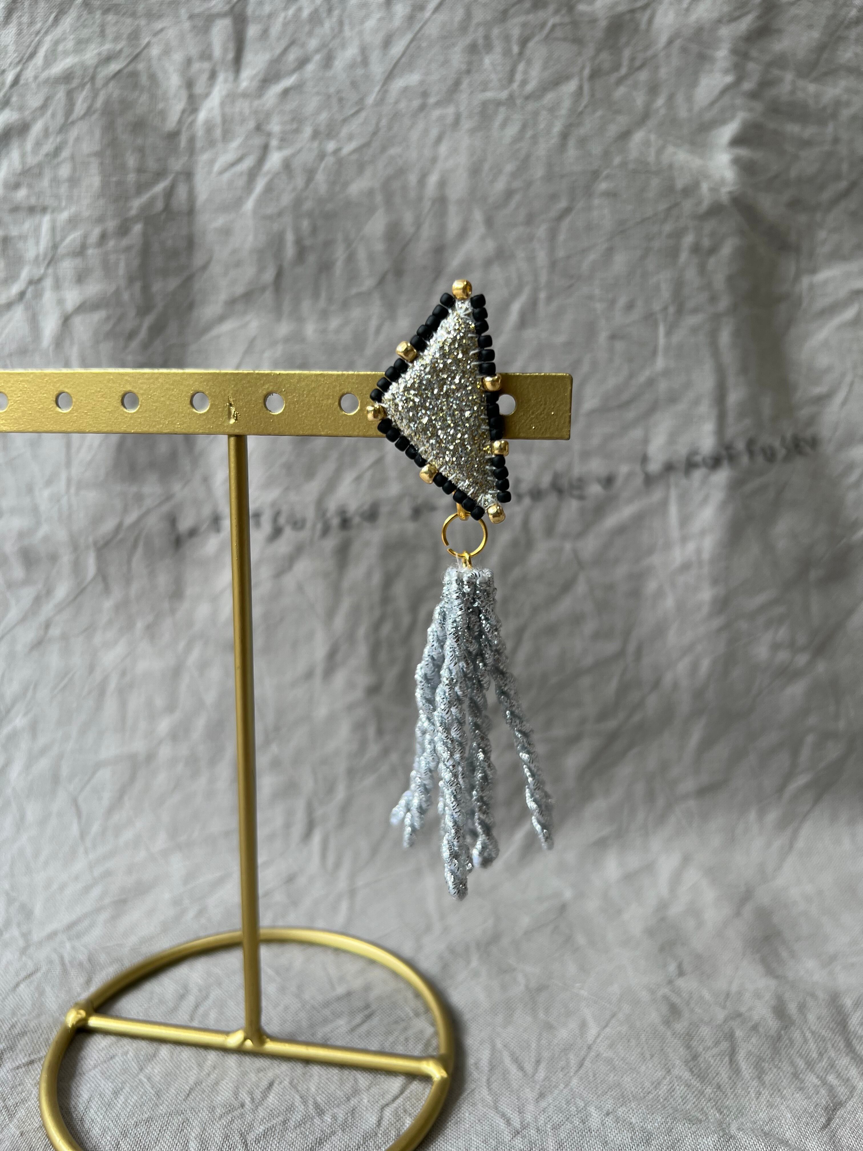 耳飾り16片耳用 「さんかくと、選べる麻or銀タッセル」ピアス・イヤリング/s-fotsusev