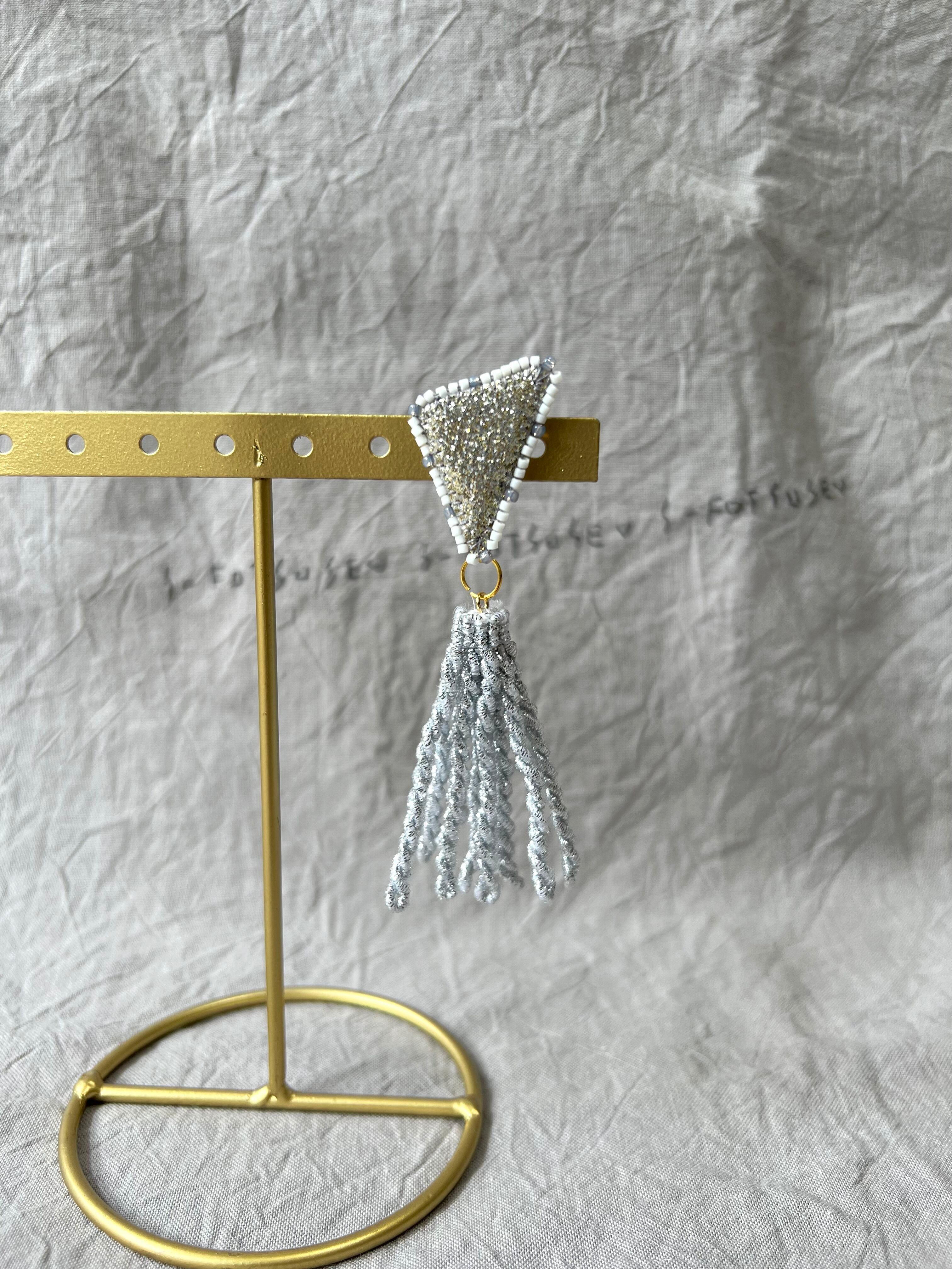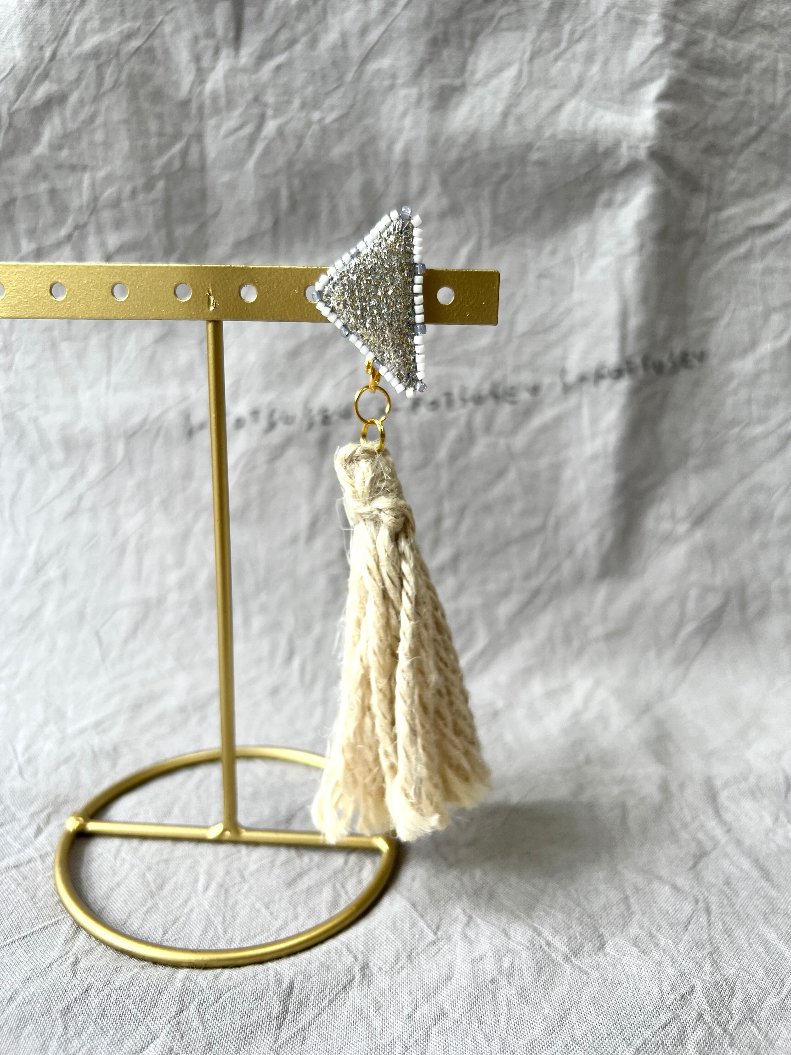 耳飾り19 片耳用 「さんかくと、選べる麻or銀タッセル」ピアス・イヤリング/s-fotsusev