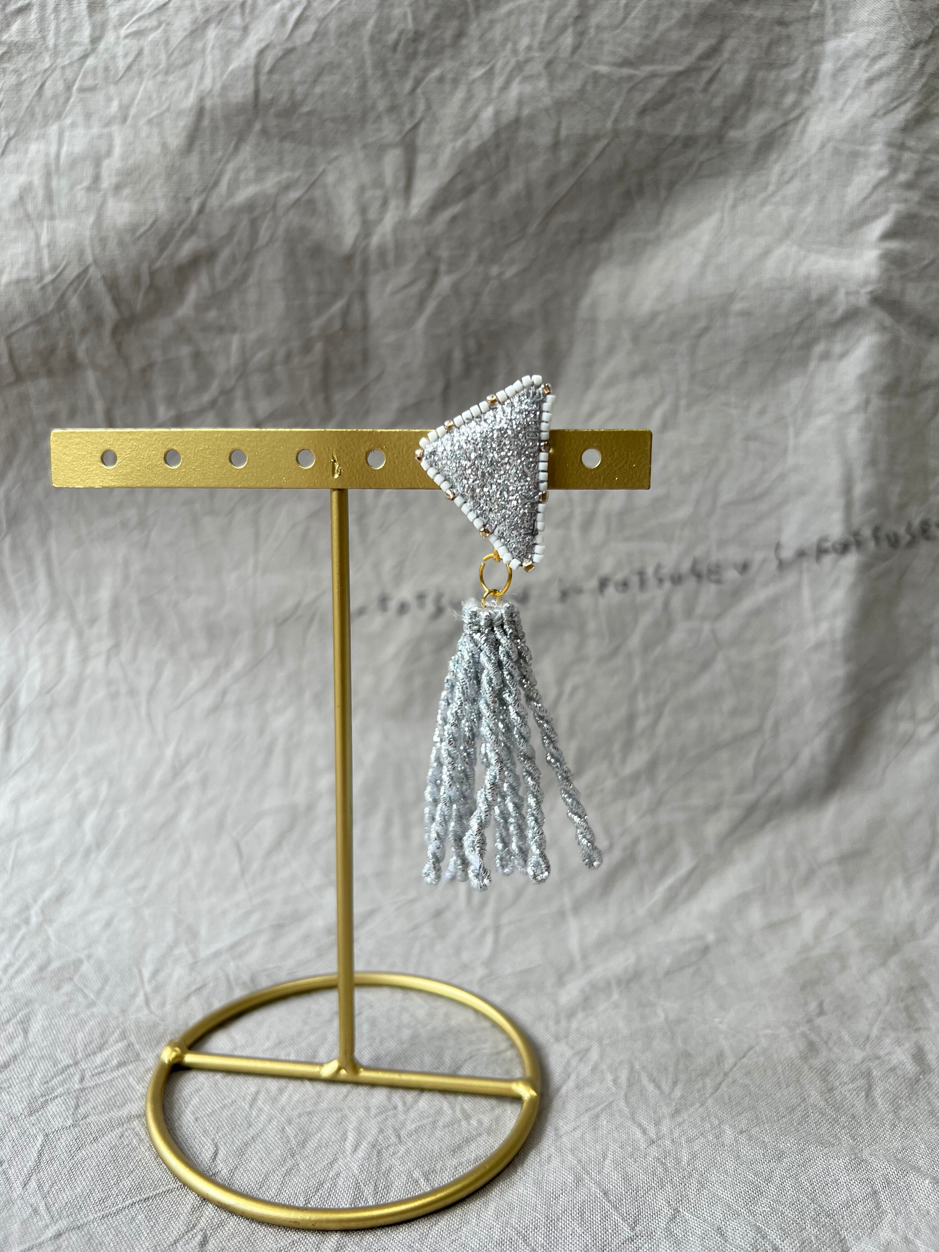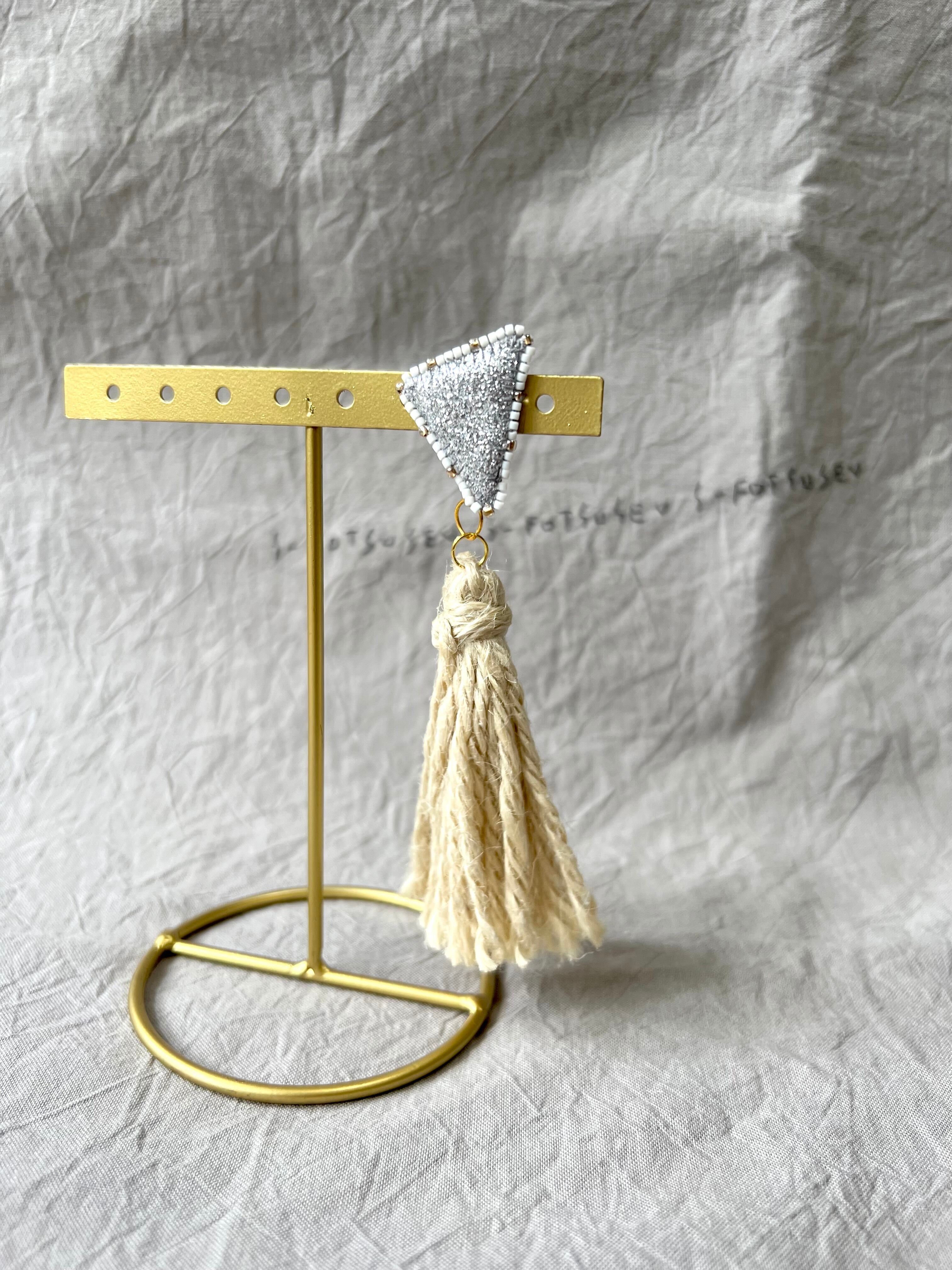 耳飾り22 片耳用 「さんかくと、選べる麻or銀タッセル」ピアス・イヤリング/s-fotsusev